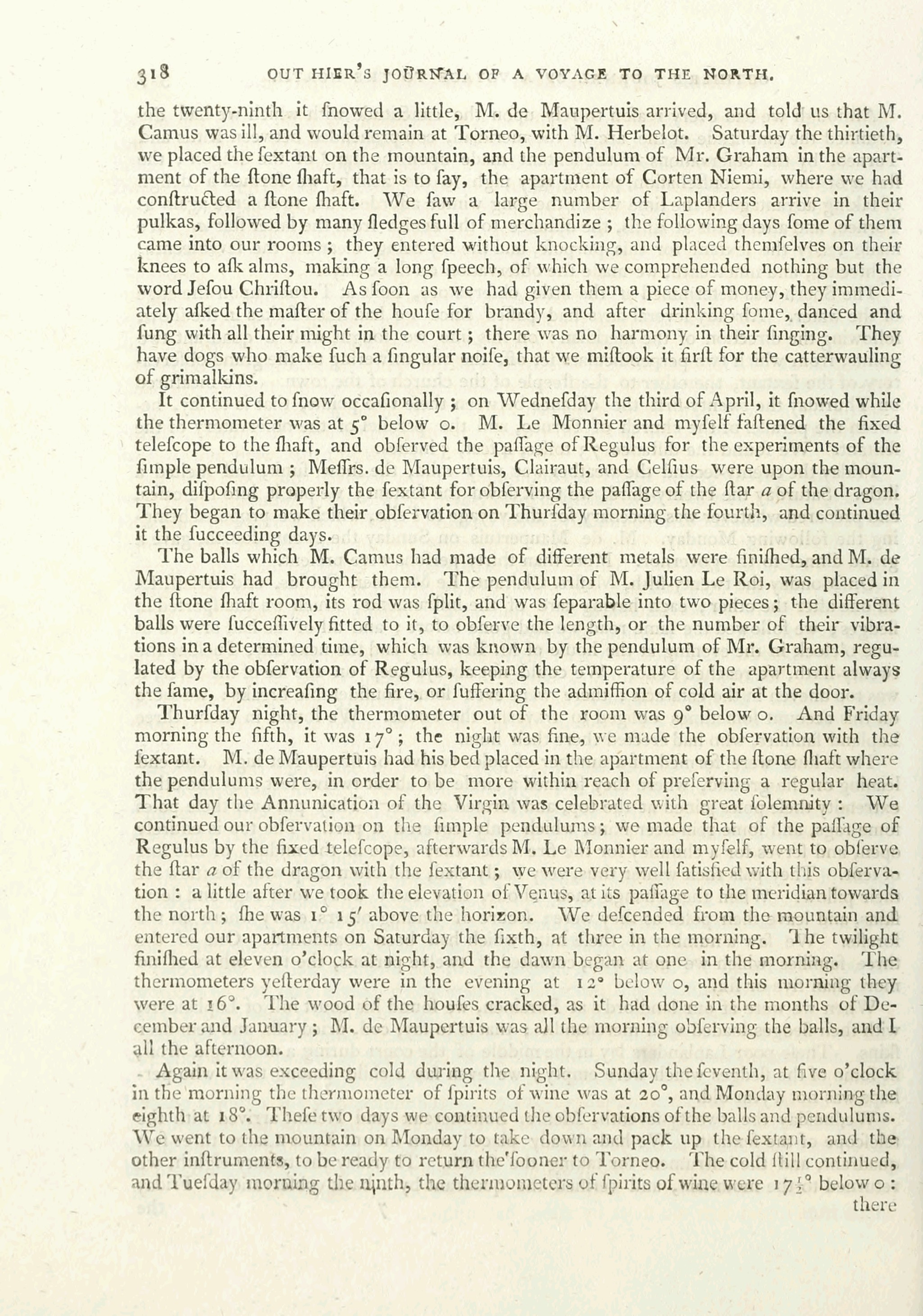 Maupertuis had brought them. ‘The pendulum of M. Julien Le Roi, was placed in