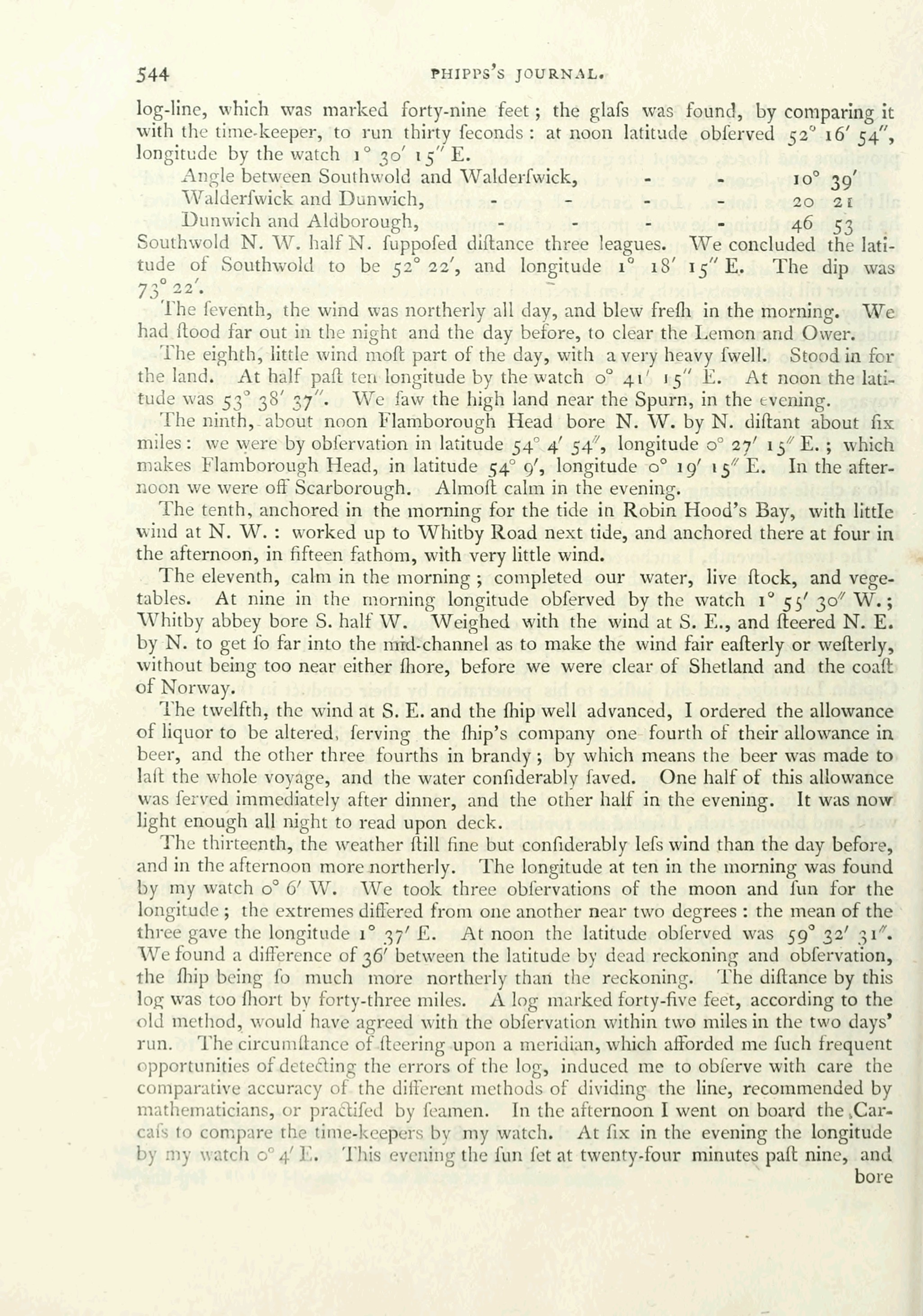 tude of Southwold to be 52° 22’, and longitude 1° 18’ 15” E. The dip was