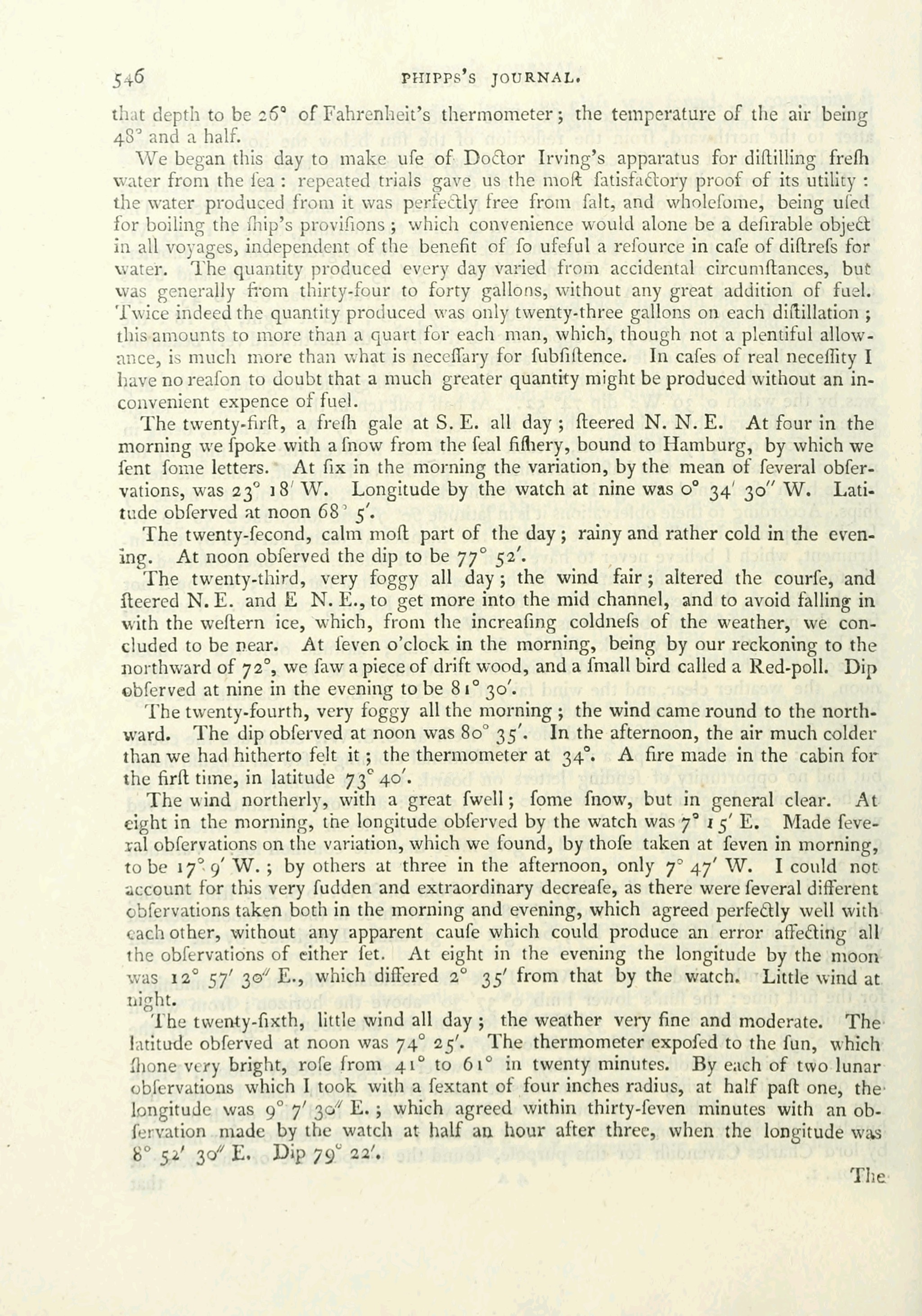 We began this day to make ufe of Doctor Irving’s apparatus for diftilling frefh