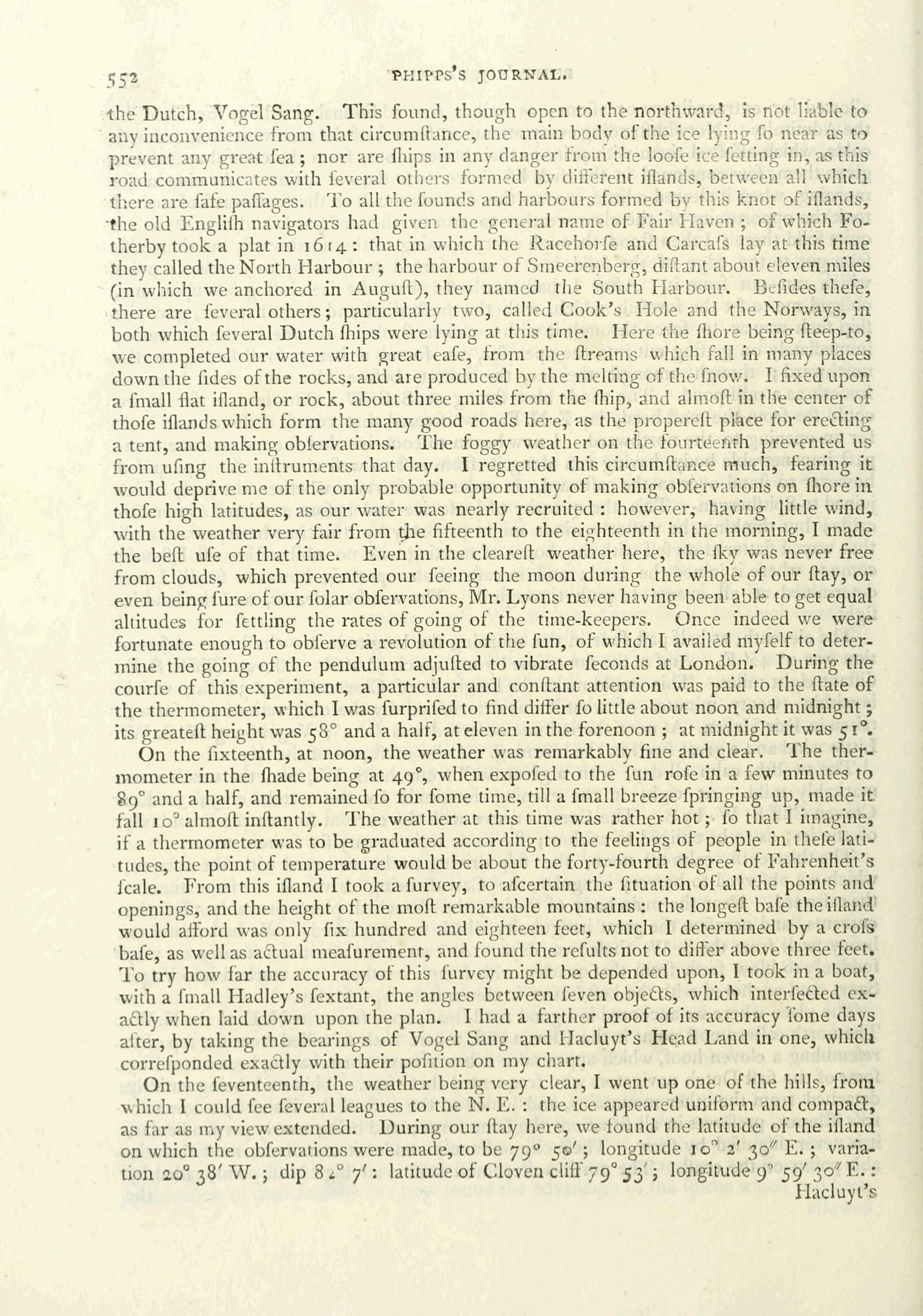 tion 20° 38’ W.; dip 82° 7’: latitude of Cloven cliff. 79°53’; longitude’g’ 59/ 30” FE. :