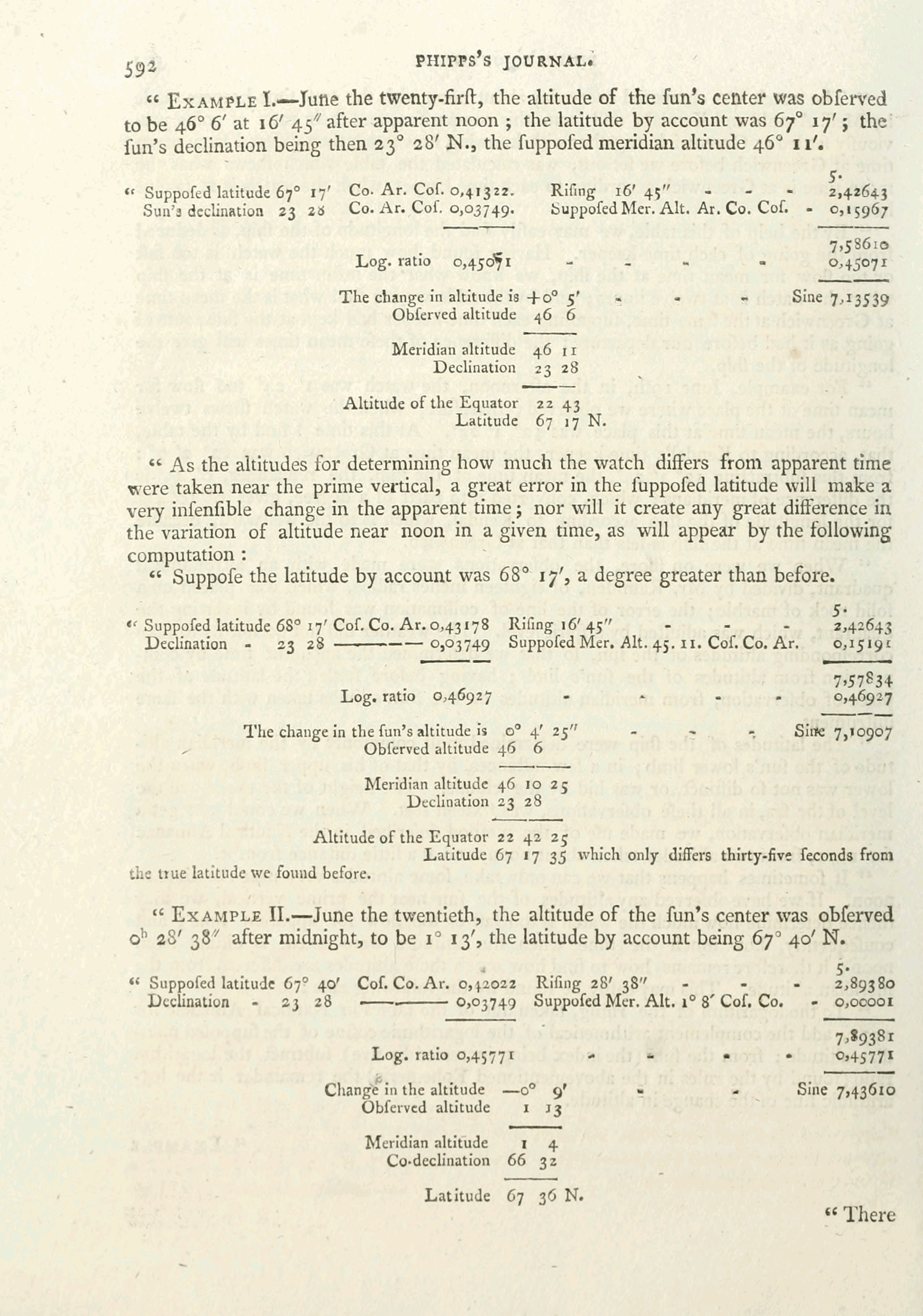 « Suppofed latitude 68° 17’ Cof. Co. Ar.0,43178 Rifing 16’ 45” - - = 2542643