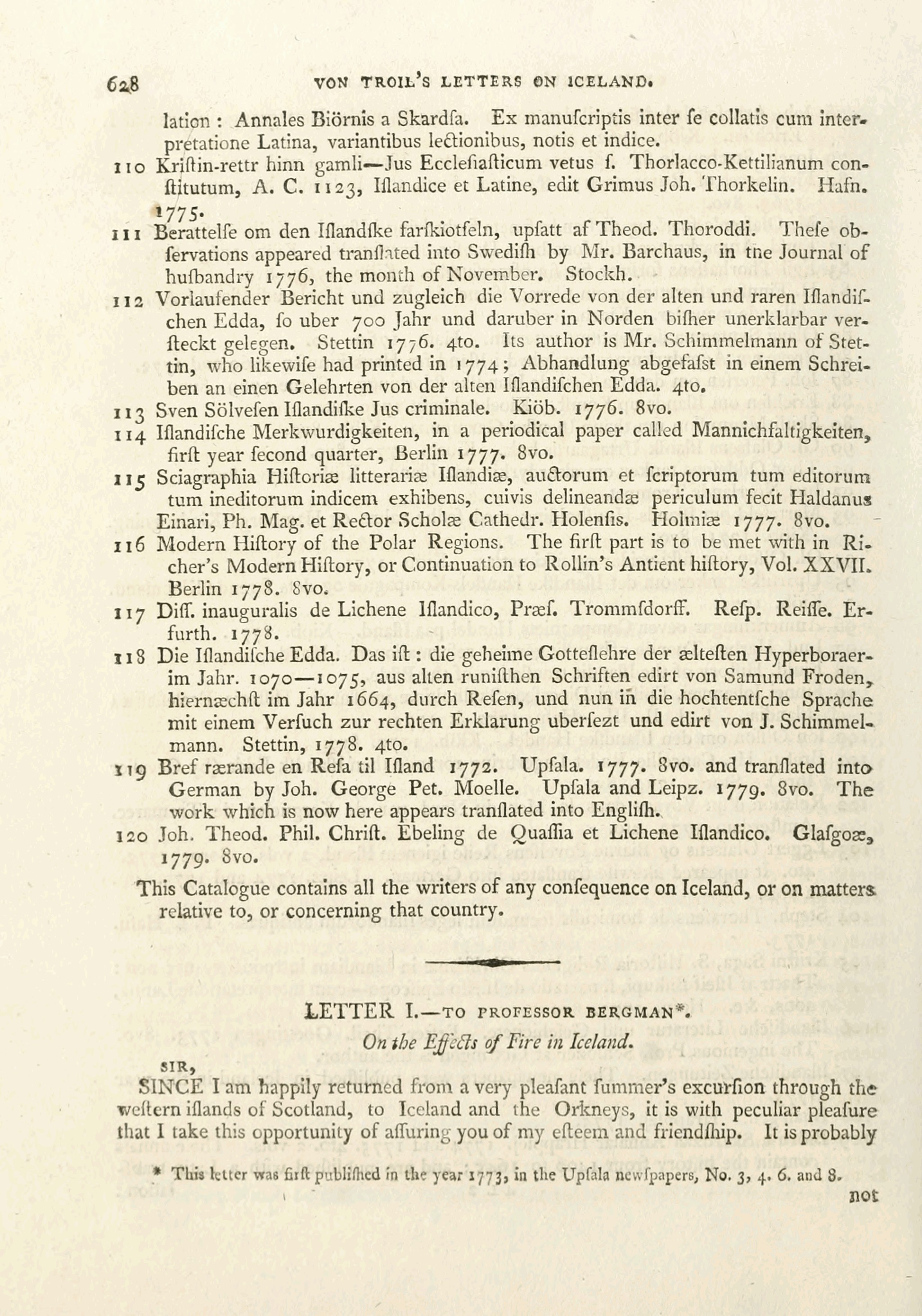 119 Bref rzrande en Refa til Iland 1772. Upfala. 1777. 8vo. and tranflated into