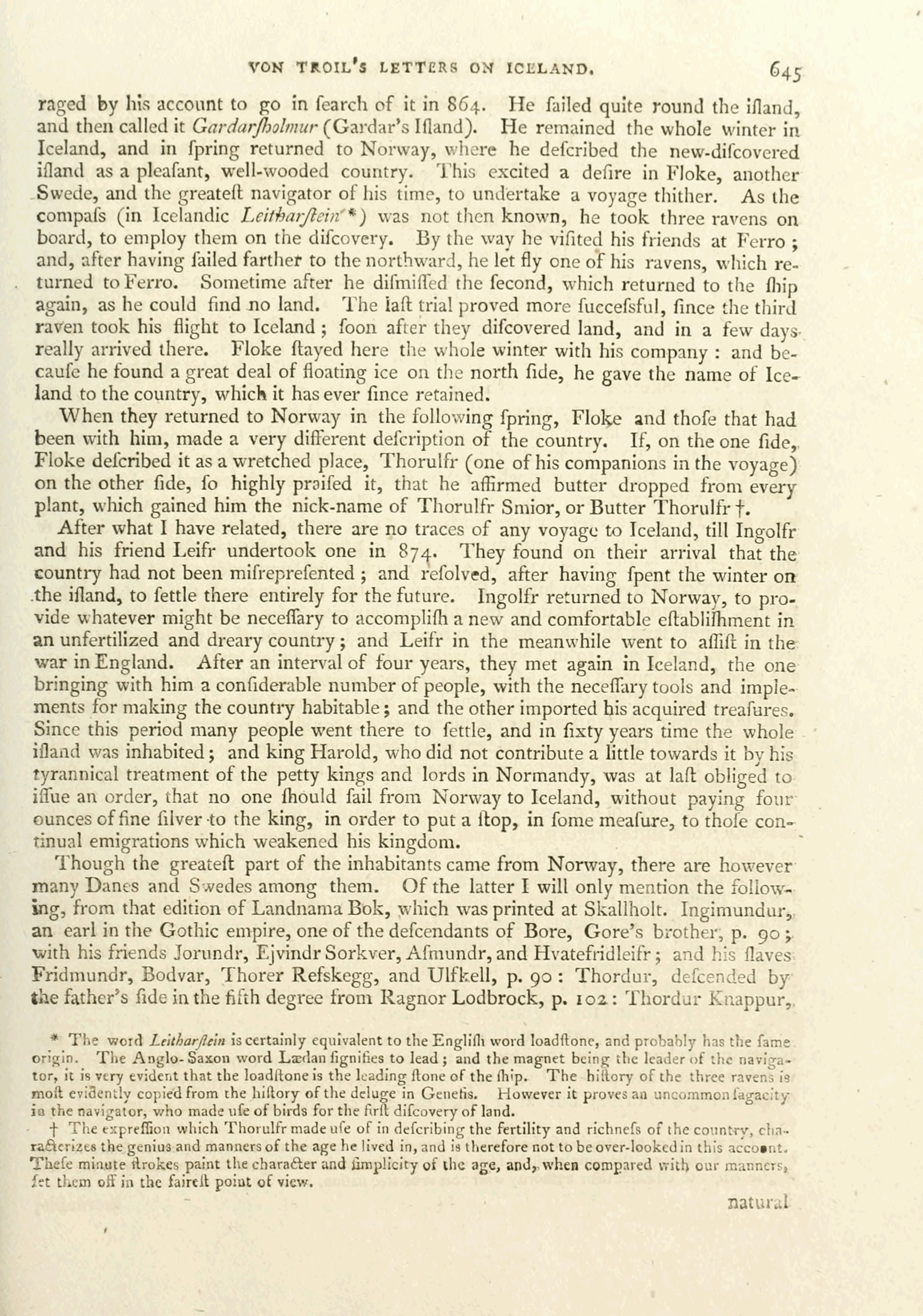 raven took his flight to Iceland; foon after they difcovered land, and in a few days.