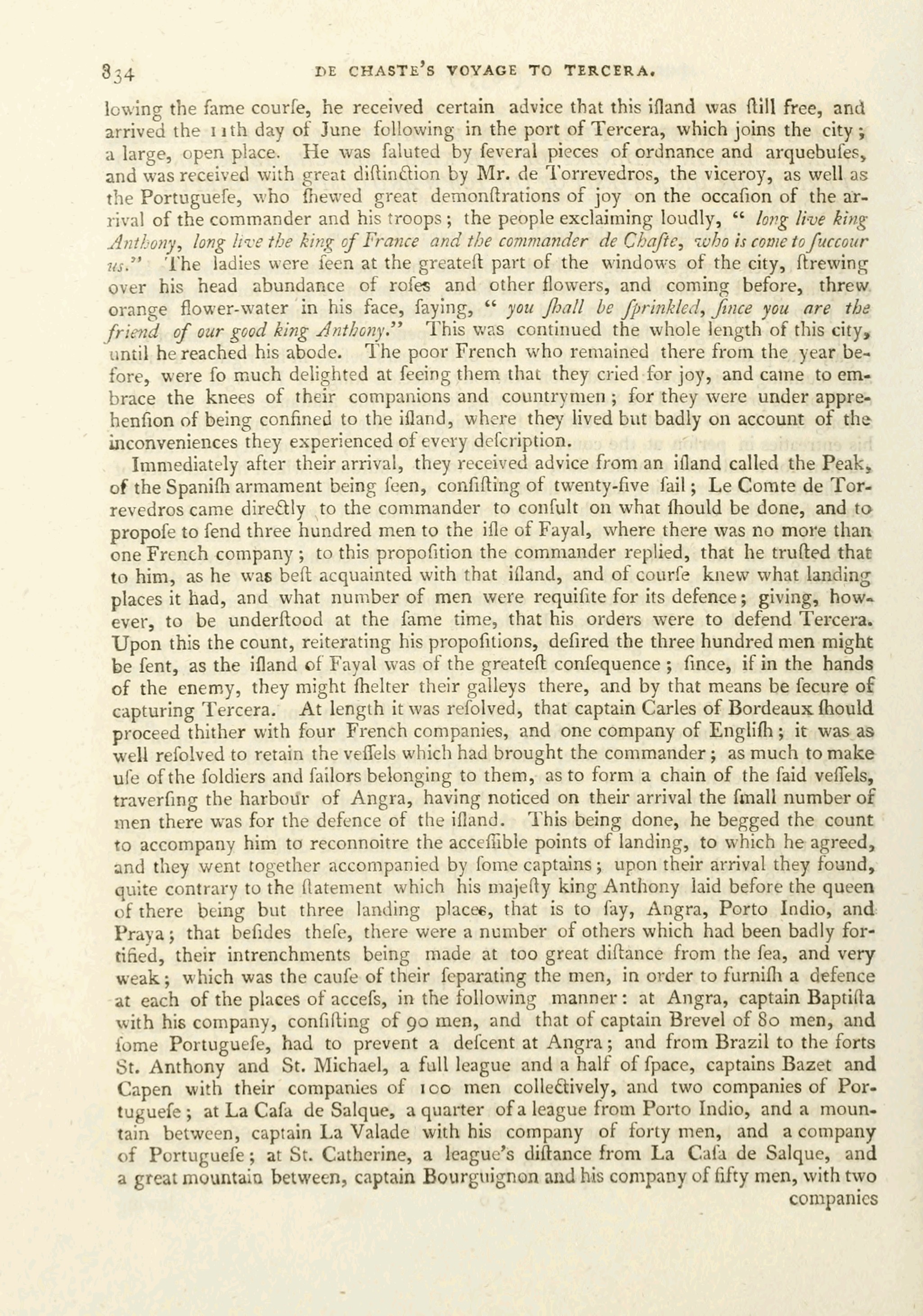 834 DE CHASTE’S VOYAGE TO TERCERA.
