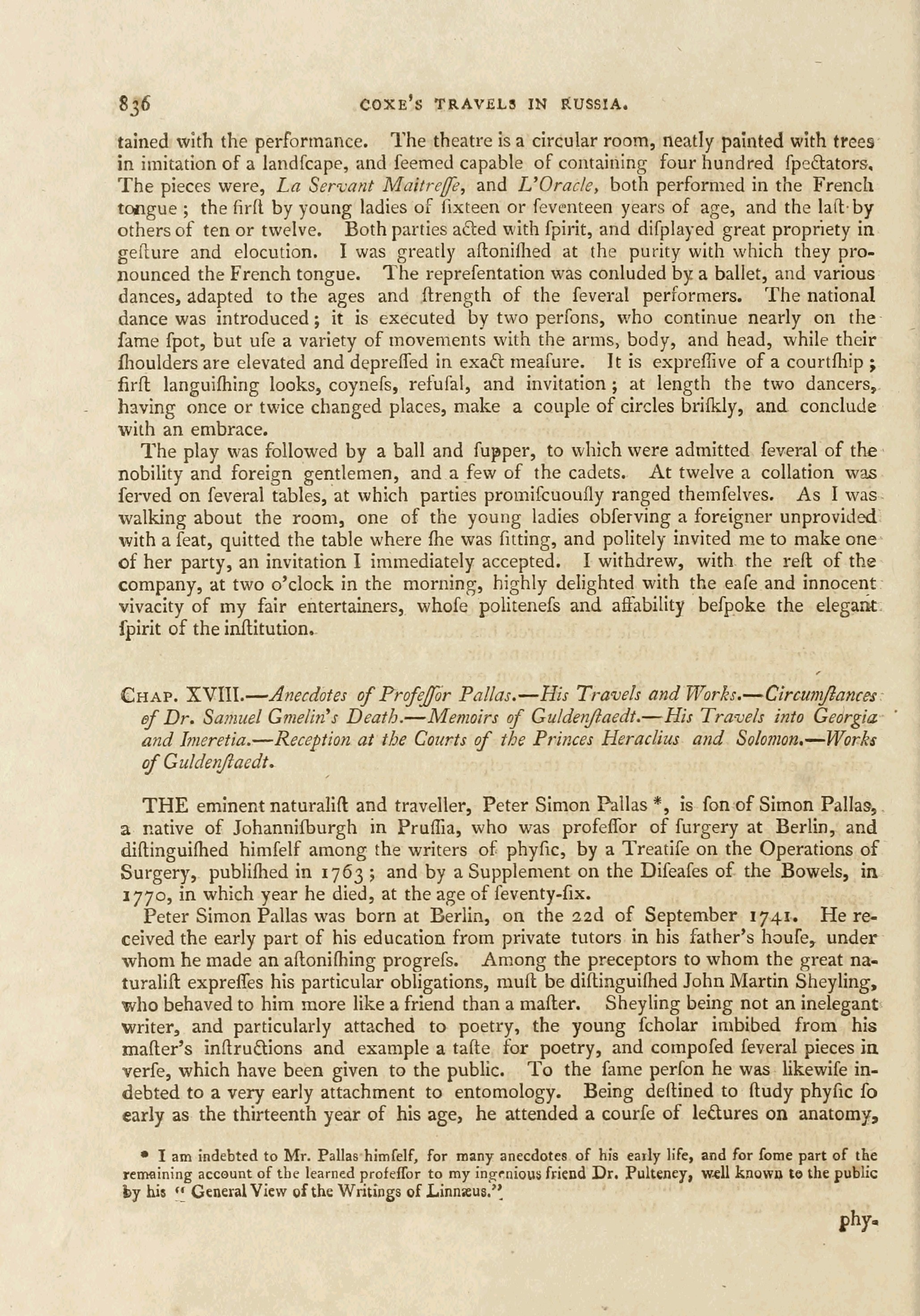 Cuap. XVIIL.—Anecdotes of Profefor Pallas.—His Travels and Works.—Circumftances -