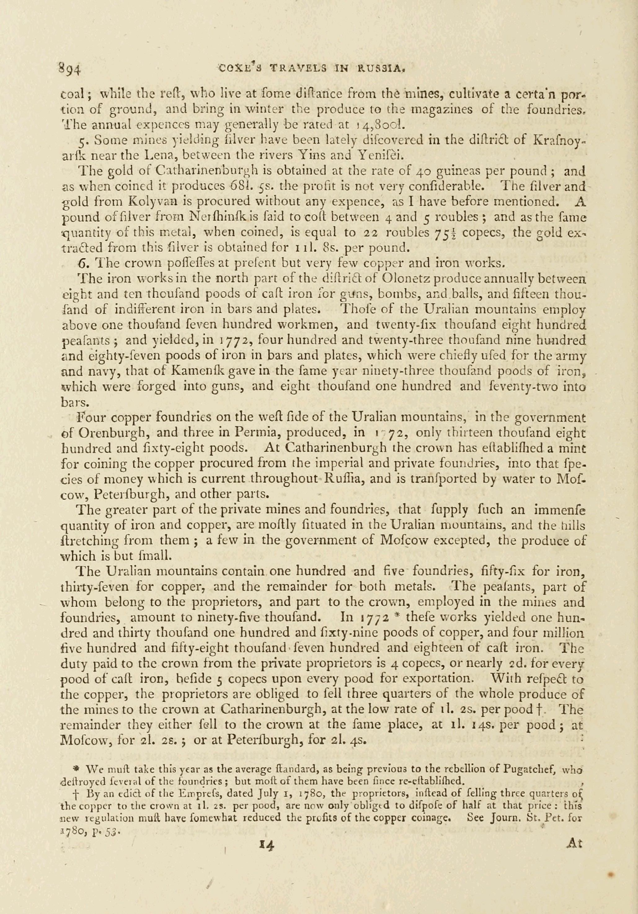 hundred and fixty-eight poods. At Catharinenburgh the crown has eftablifhed a mint