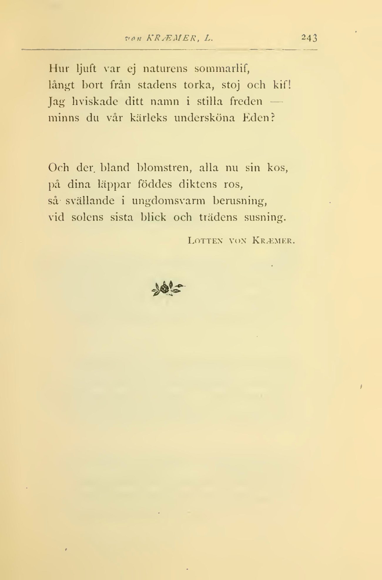 Och der. bland blomstren, alla nu sin kos,