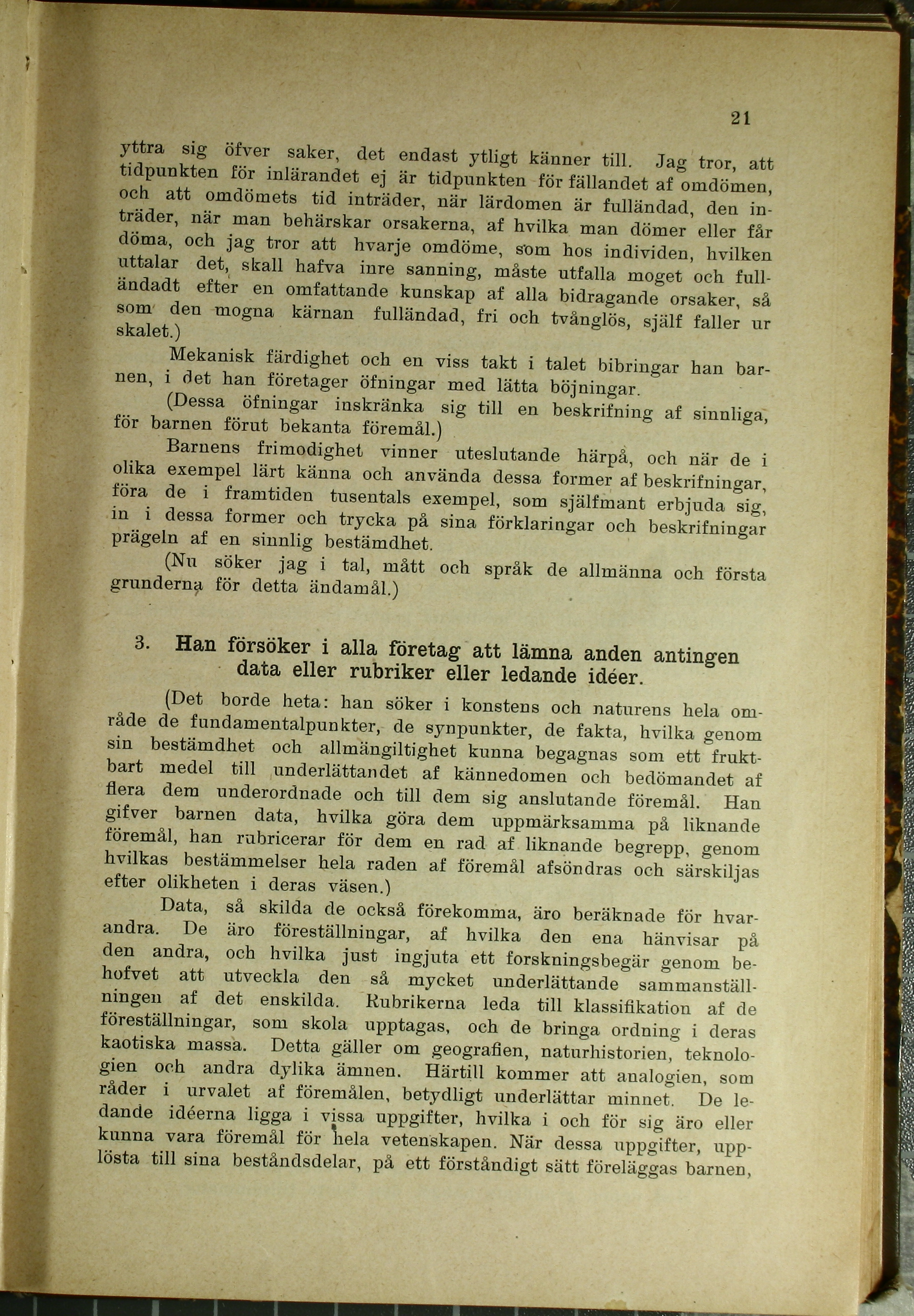 Full resolution (JPEG) - On this page / på denna sida - I - 2. Han anknyter sina lärdomar fullkomligt till språket - 3. Han försöker i alla företag att lämna anden antingen data eller rubriker eller ledande idéer