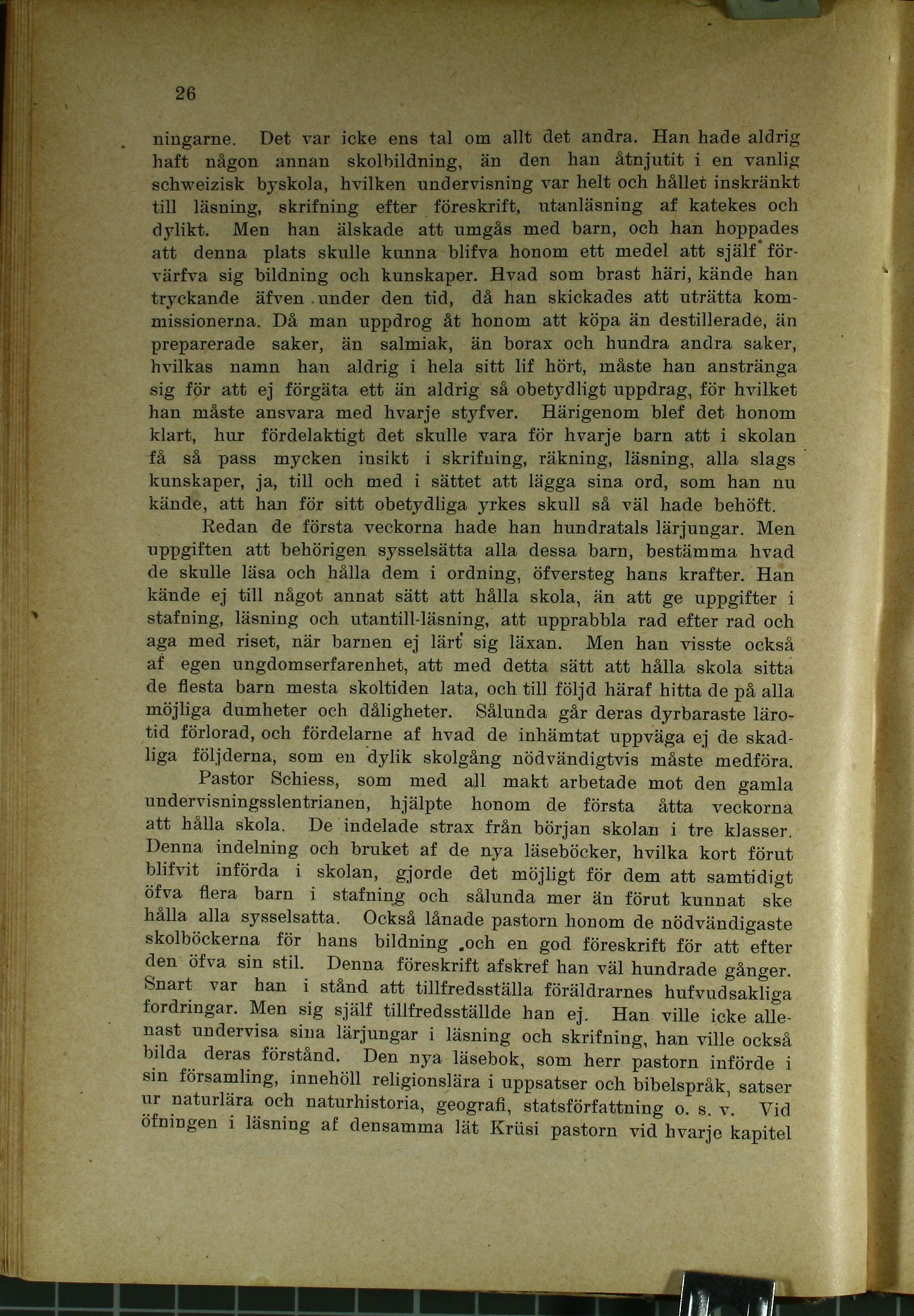 öfningen i läsning af densamma lät Krüsi pastorn vid hvarje kapitel