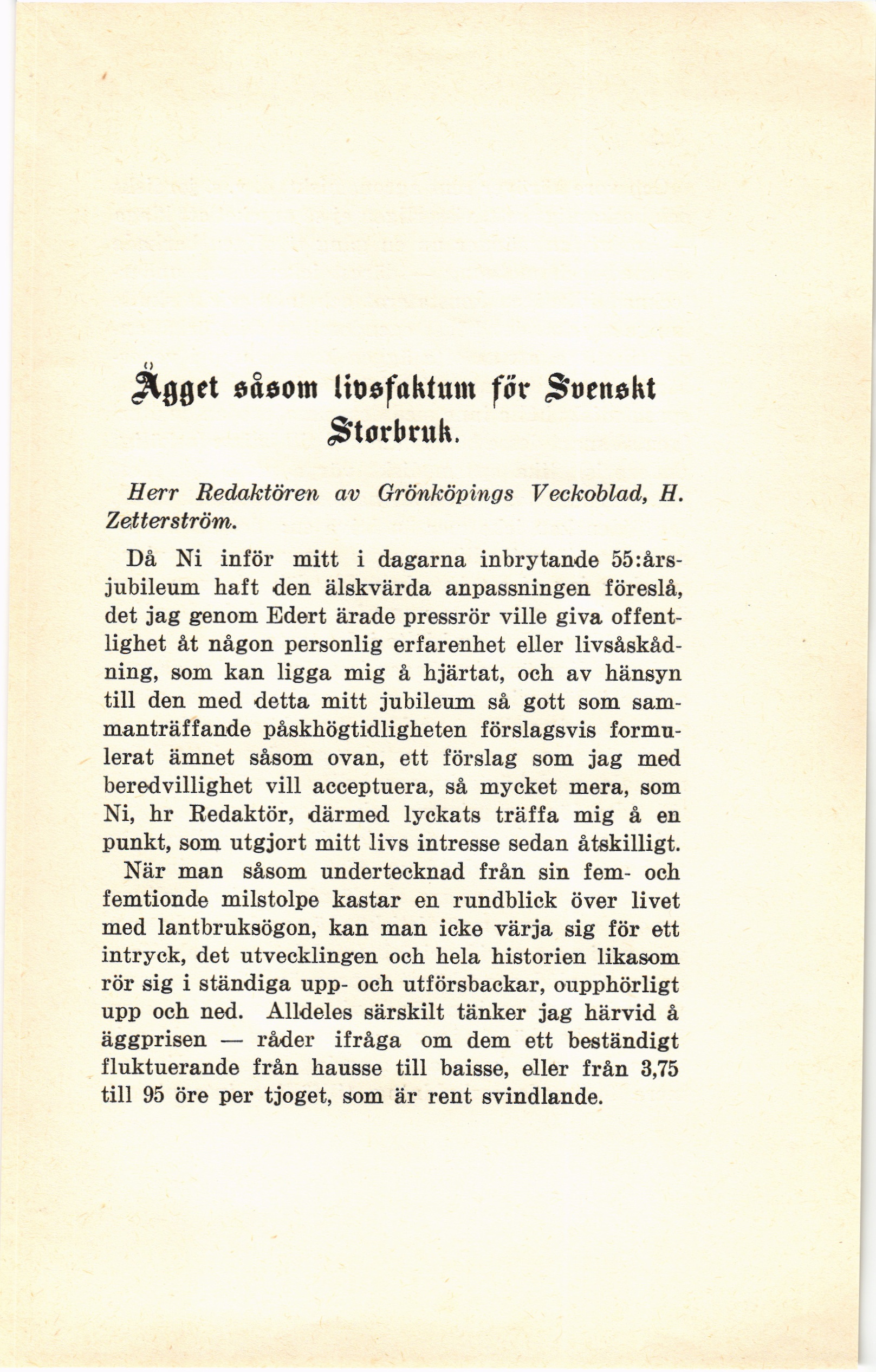 Ägget såsom livsfaktum för Svenskt Storbruk.