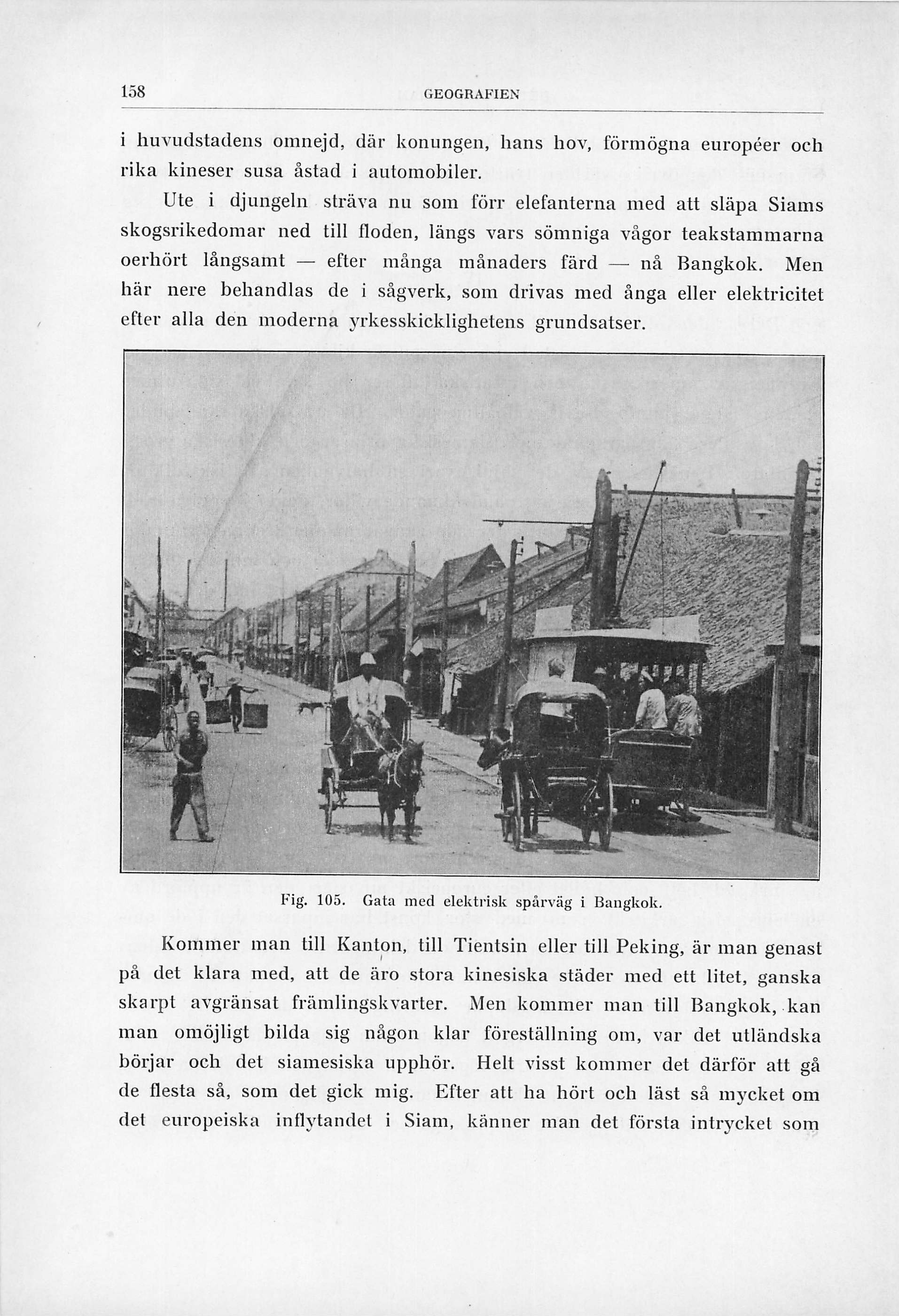 Fig. 105. Gata med elektrisk spårväg i Bangkok.