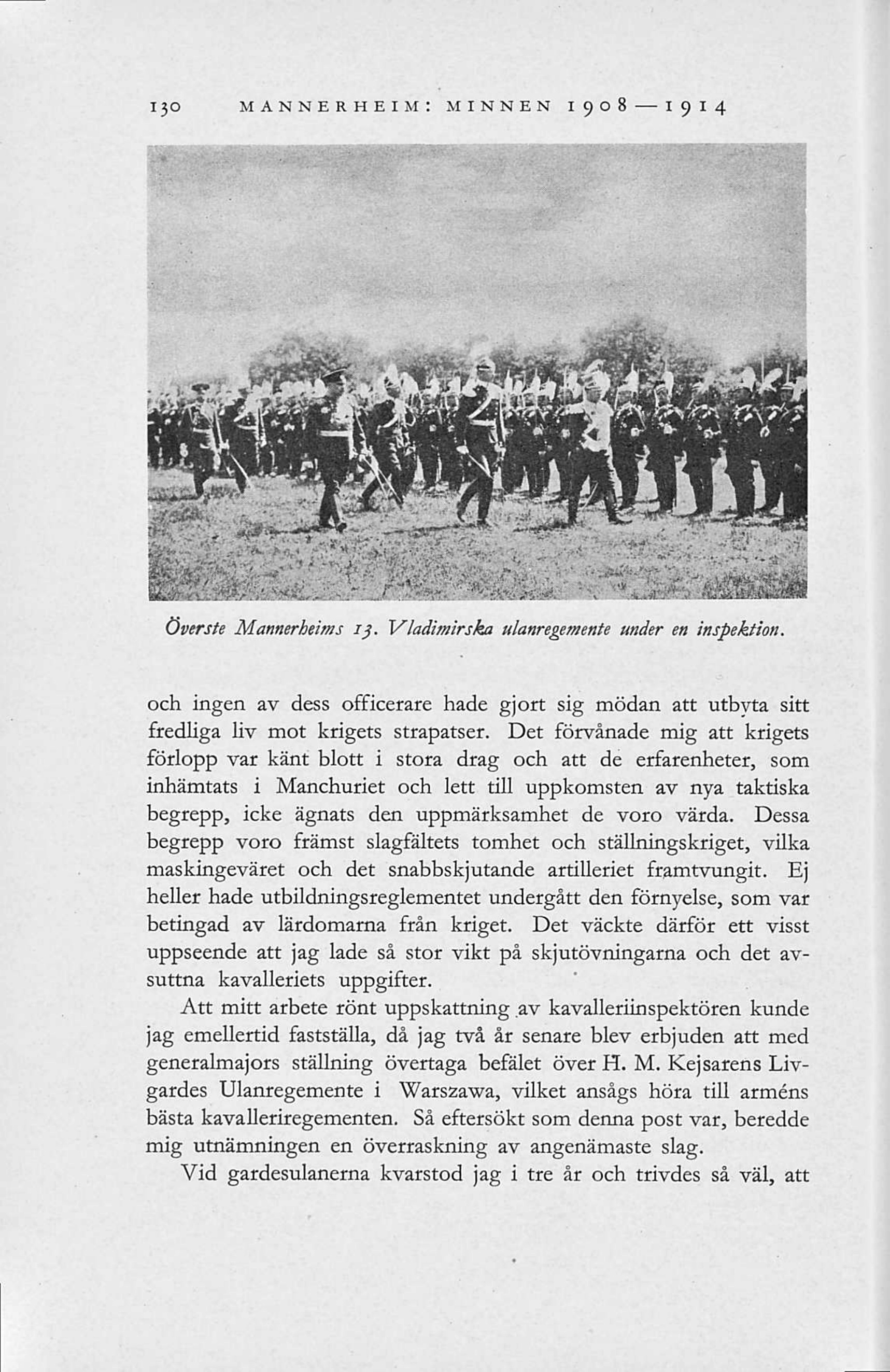 | Överste Mannerheims 13. Vladimirska ulanregemente under en inspektion. |