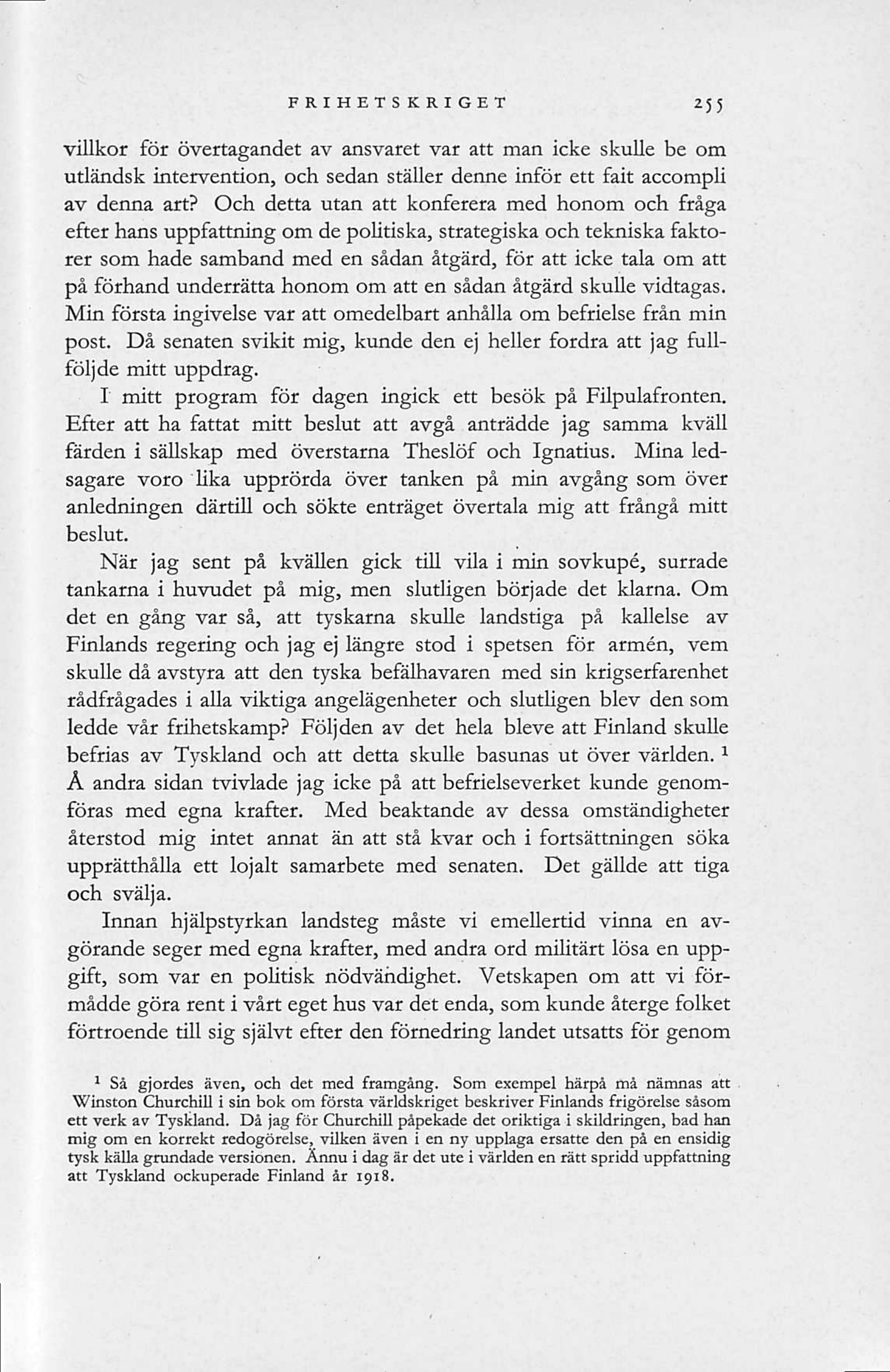Finlands regering och jag ej längre stod i spetsen för armén, vem