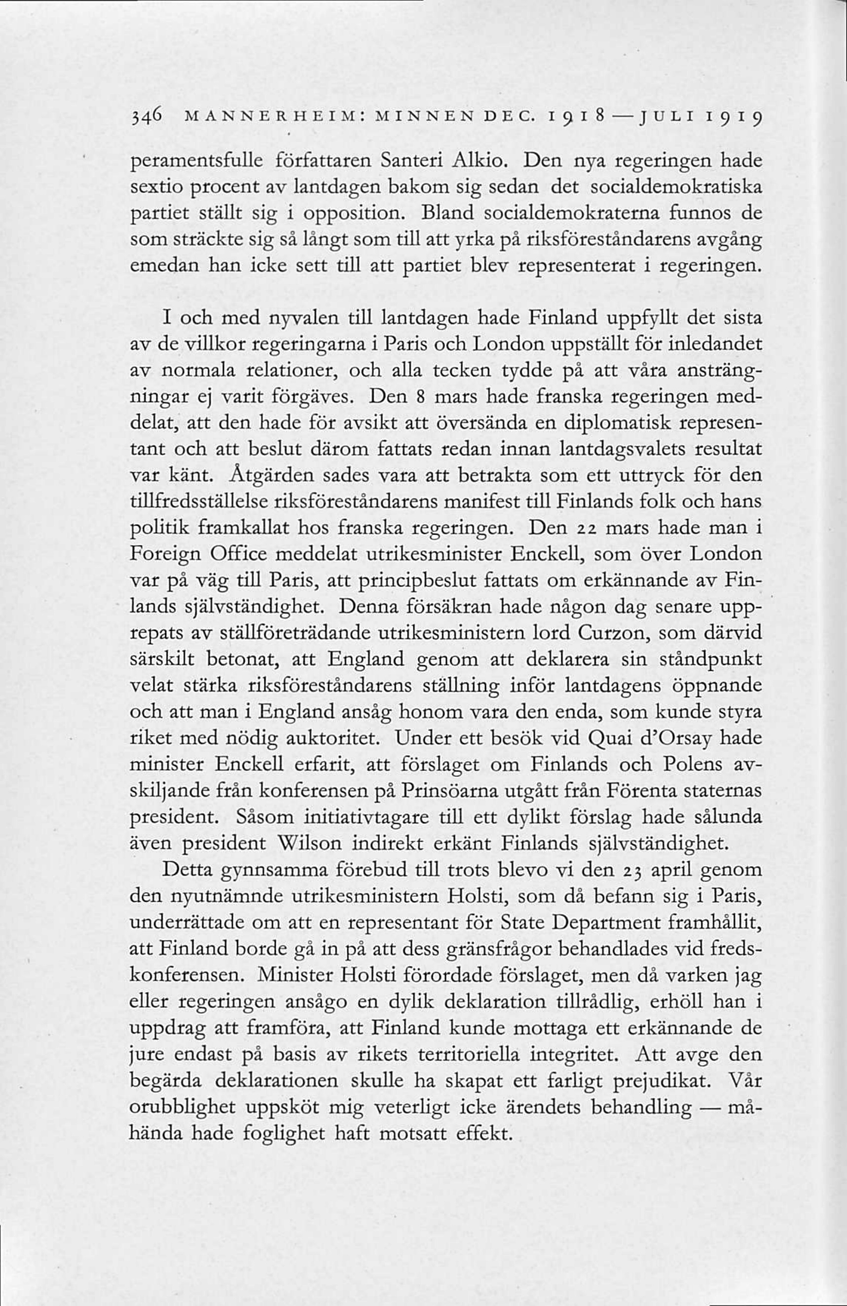 340 MANNERHEIM: MINNEN DEC. 1918 —JULI 1919