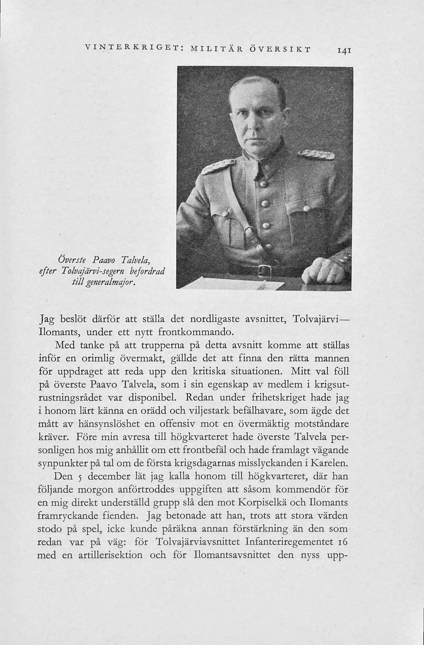 på överste Paavo Talvela, som i sin egenskap av medlem i krigsut-