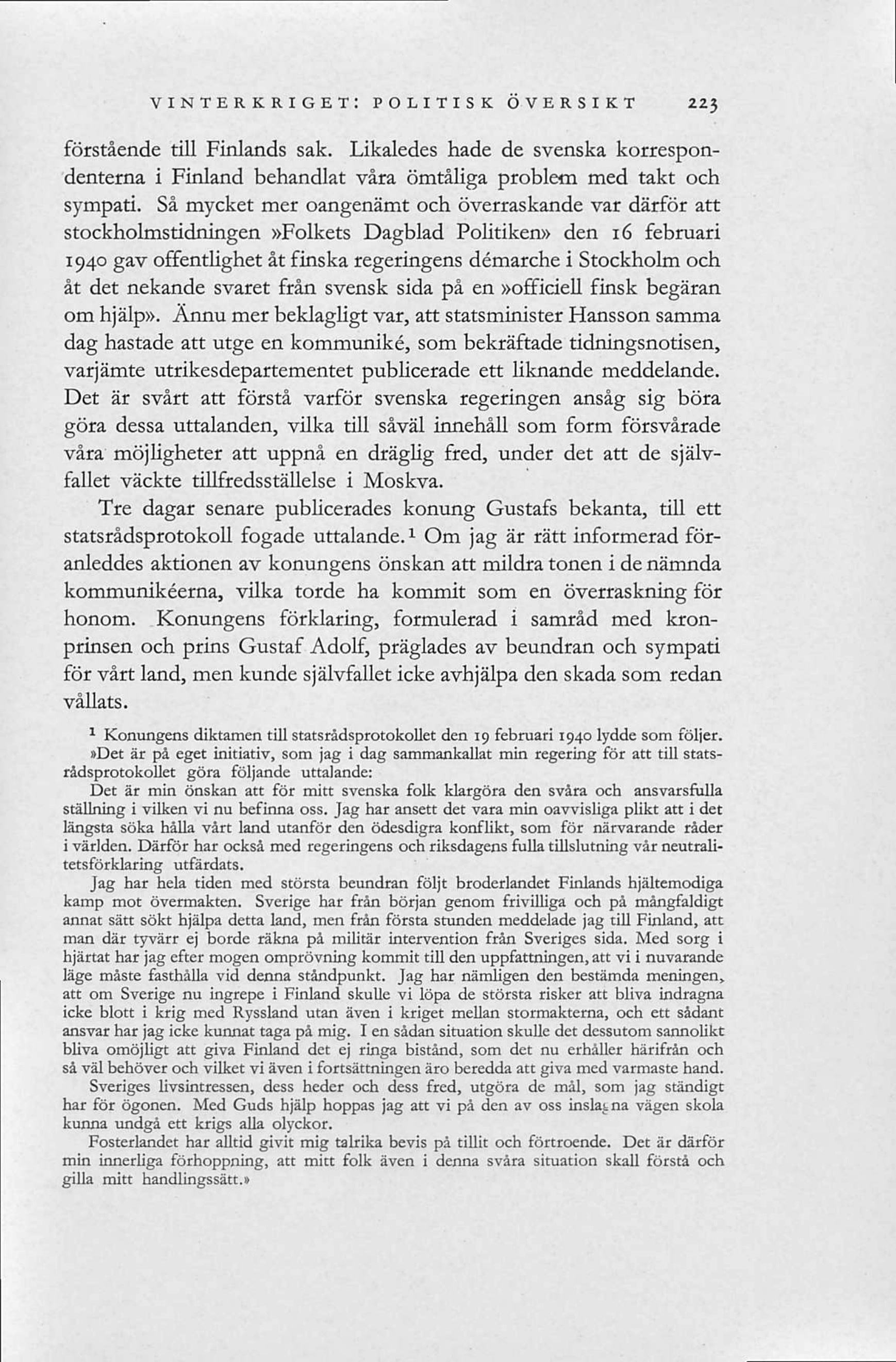 2 Konungens diktamen till statsrådsprotokollet den 19 februari 1940 lydde som följer.