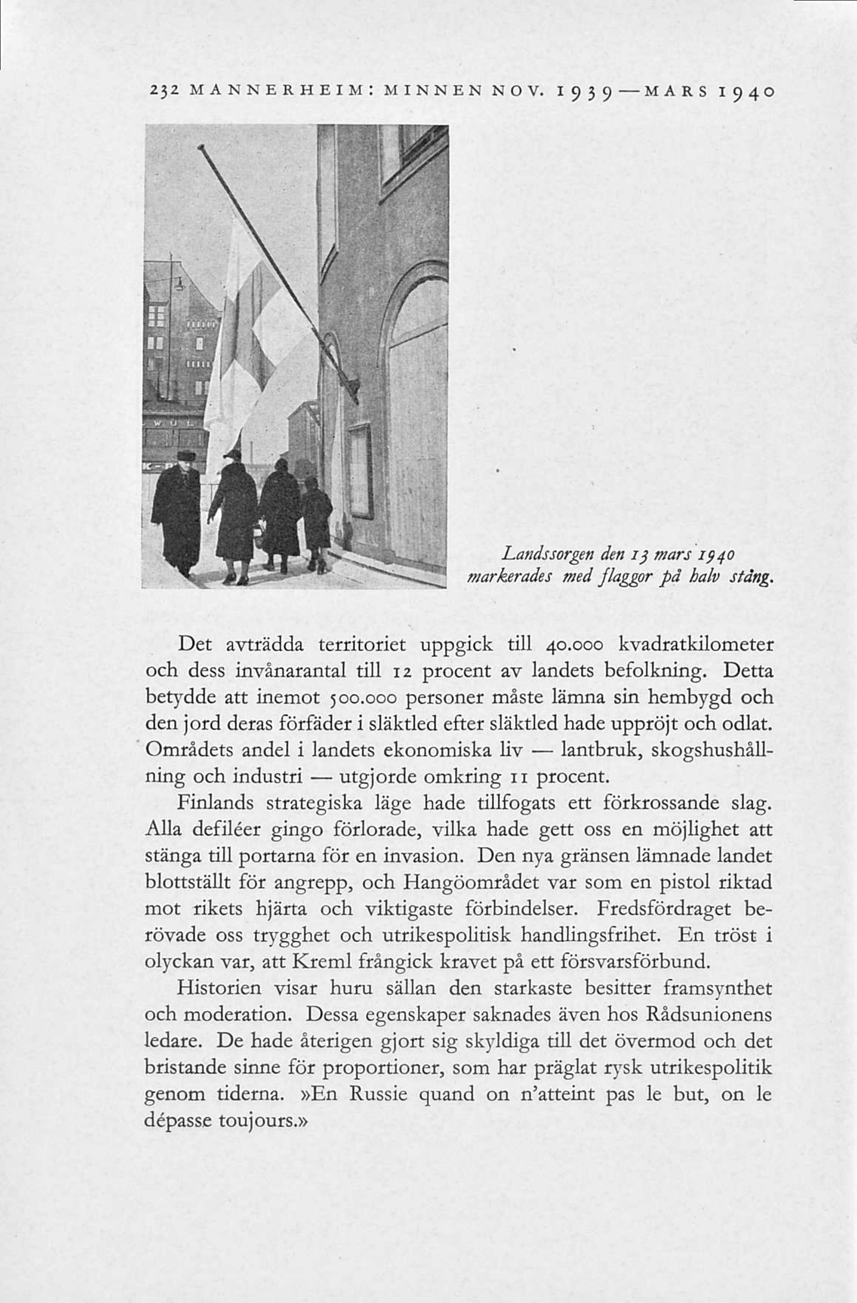 232 MANNERHEIM: MINNEN NOV. 1939 MARS 19490