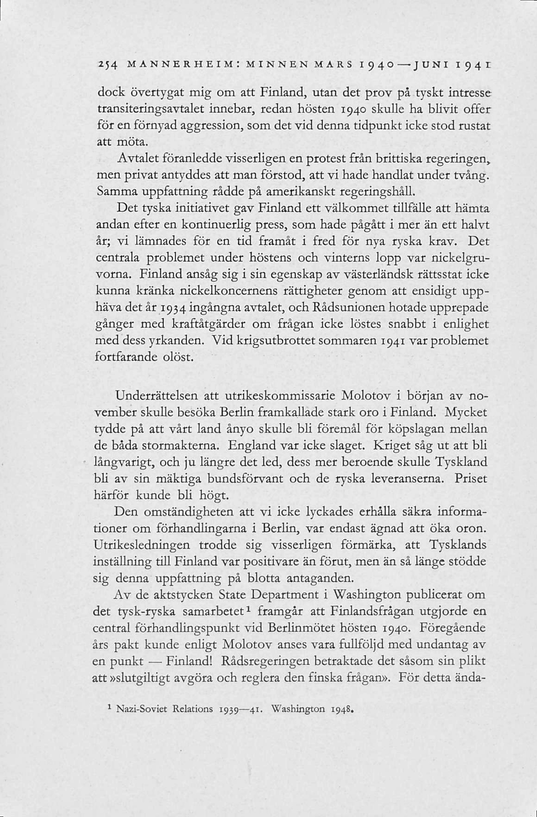 254 MANNERHEIM: MINNEN MARS 1940—JUNI 1941