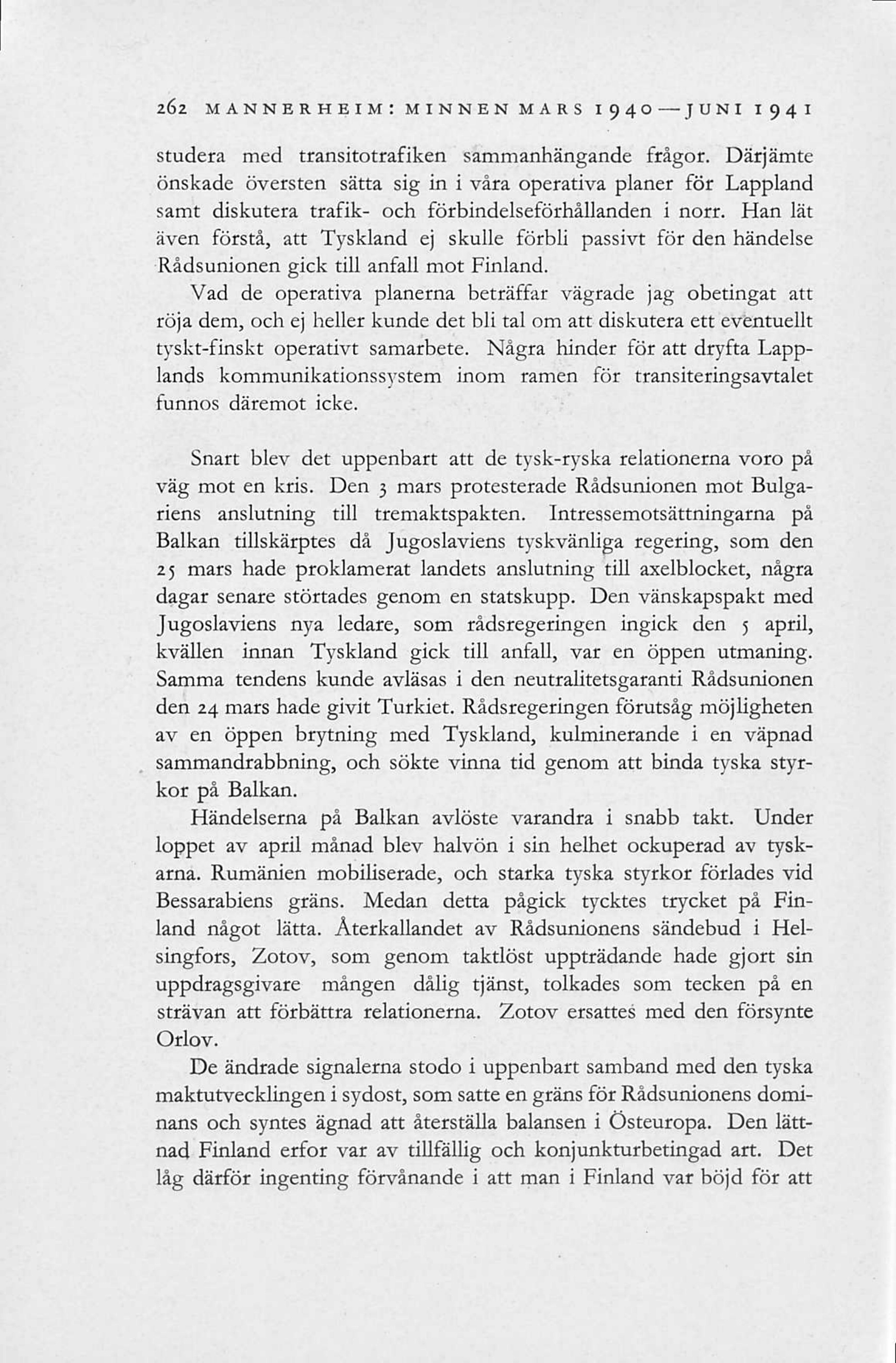 262 MANNERHEIM: MINNEN MARS I1940—JUNI 1941