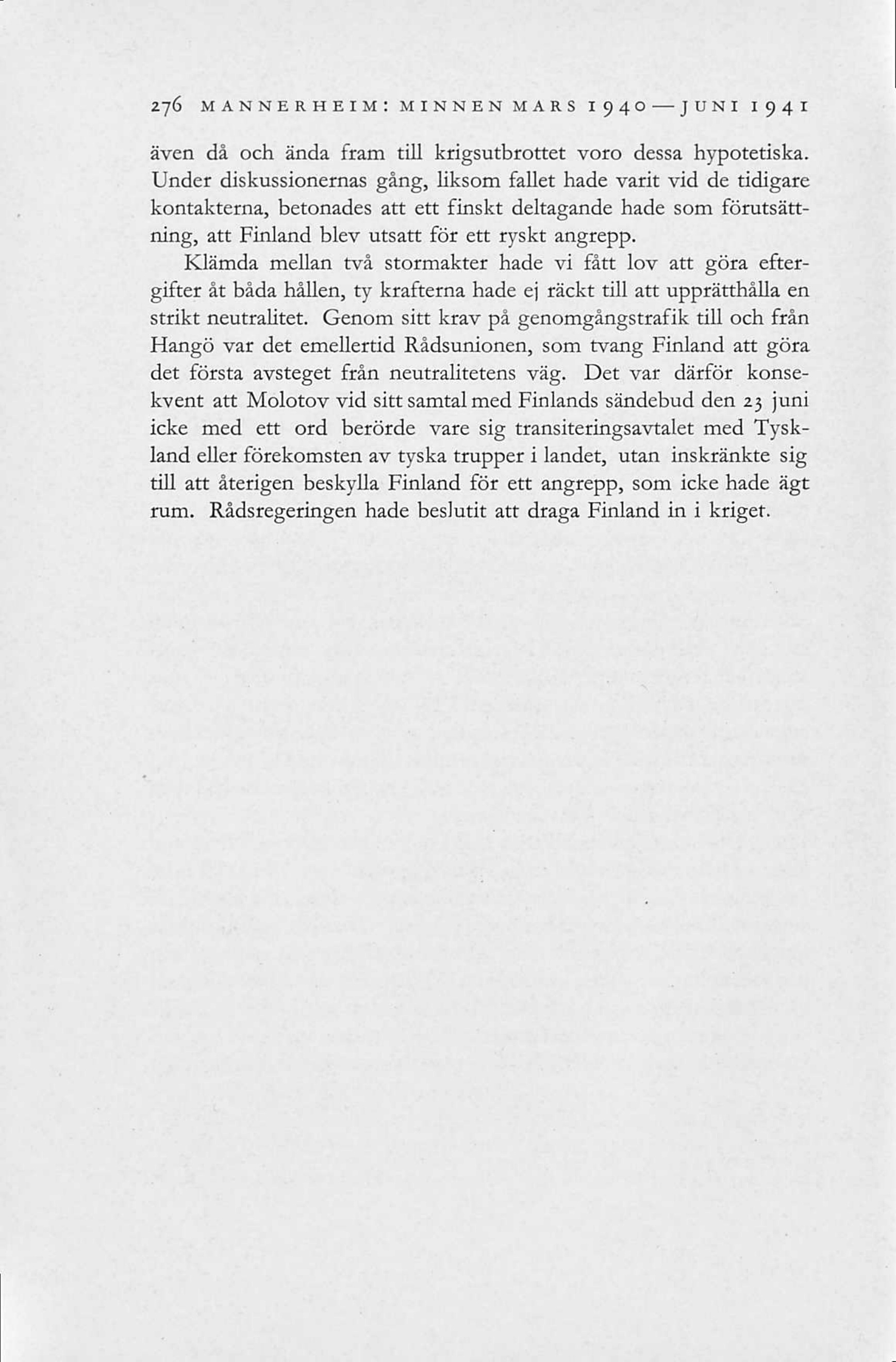 270 MANNERHEIM: MINNEN MARS 1940—JUNI 1941