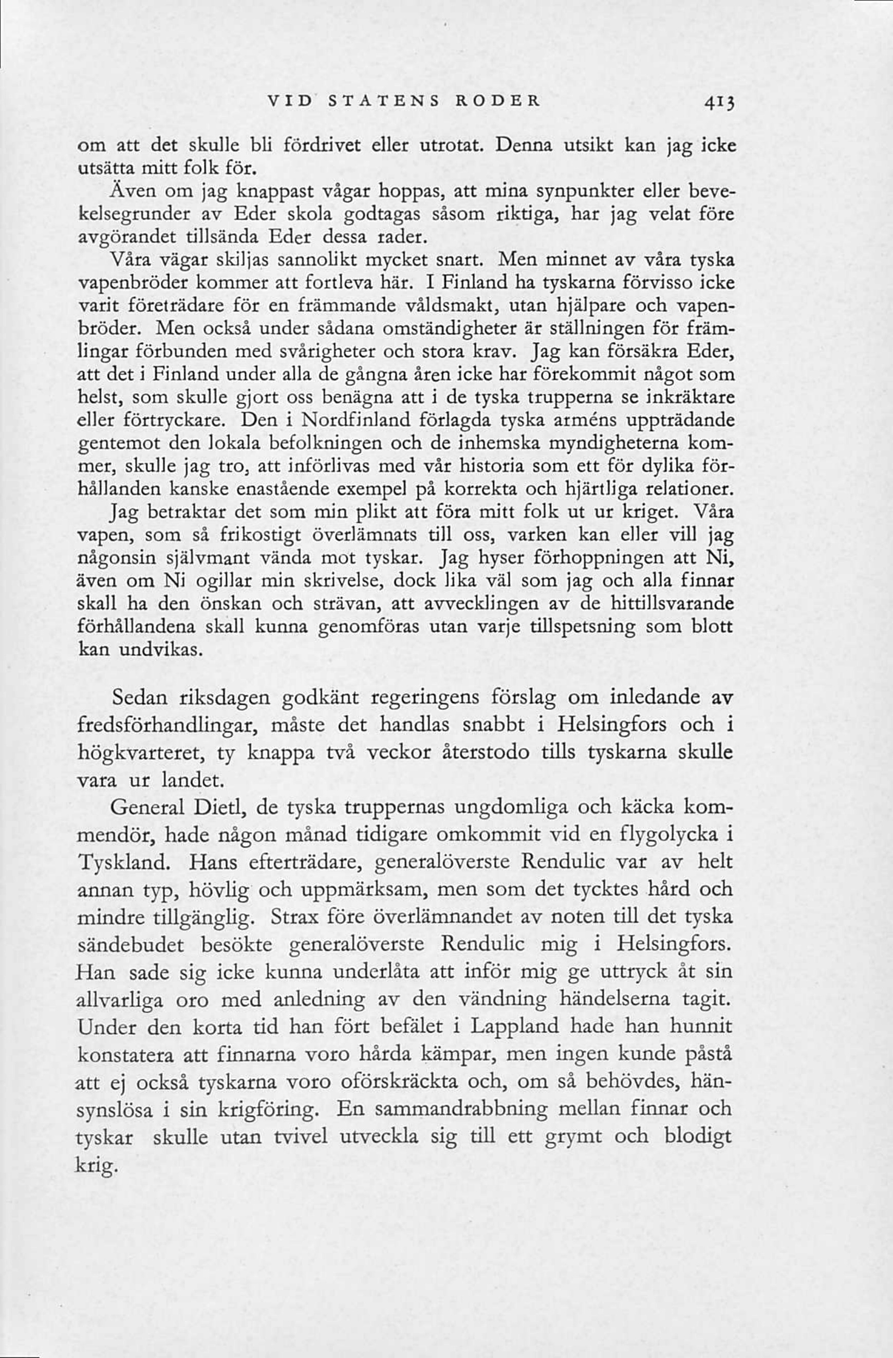 sändebudet besökte generalöverste Rendulic mig i Helsingfors.