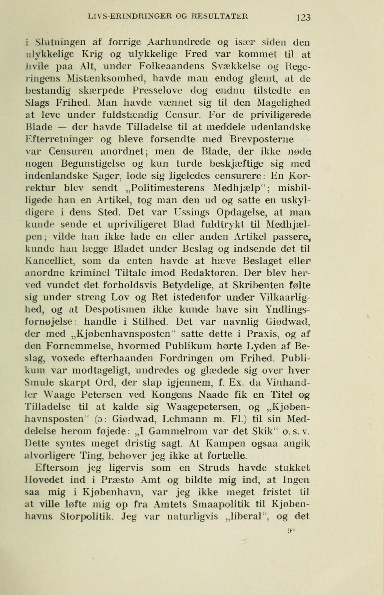 havns Storpolitik. Jeg var naturligvis ,, liberal"; og det