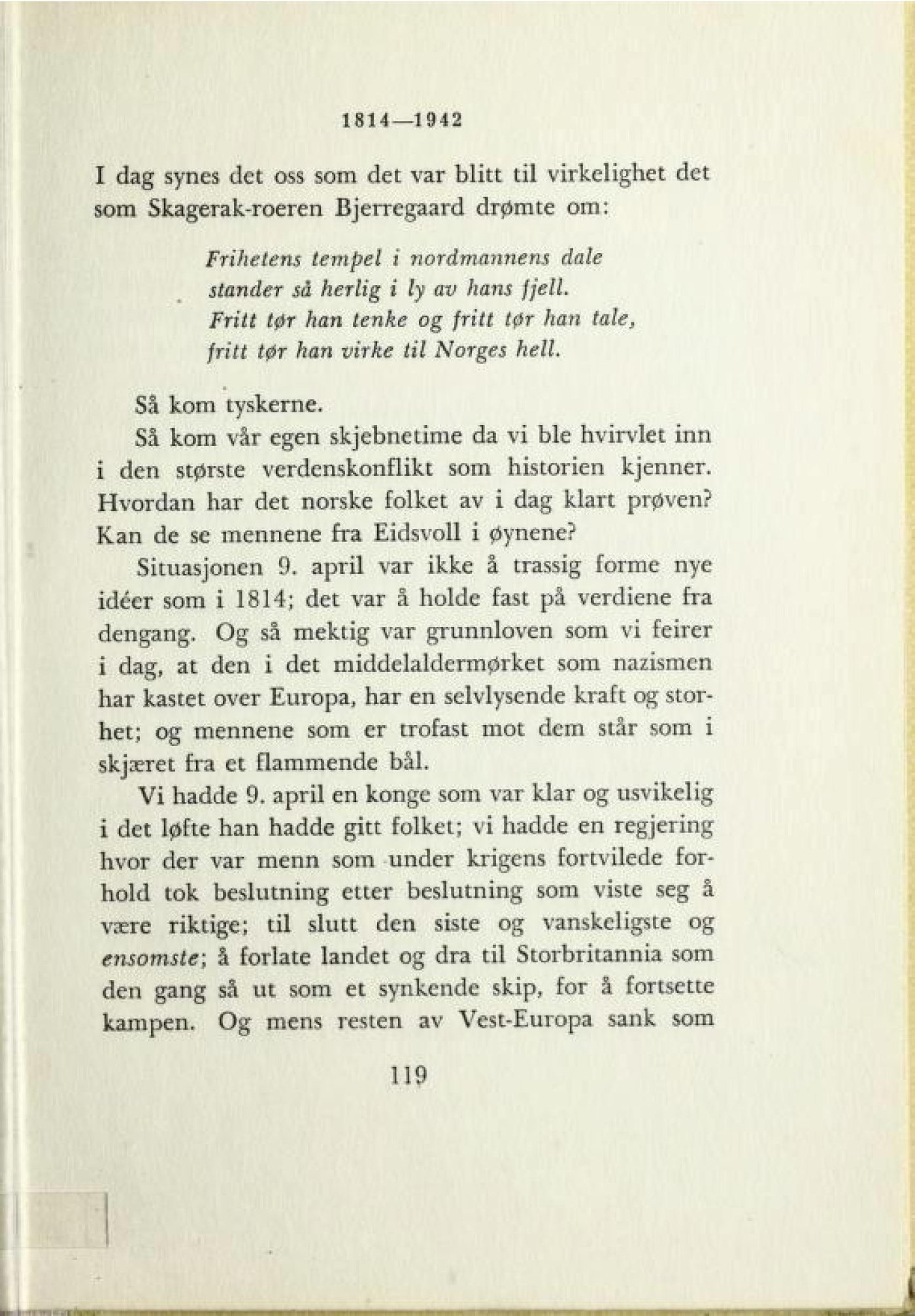 idéer som i 1814; det var å holde fast på verdiene fra