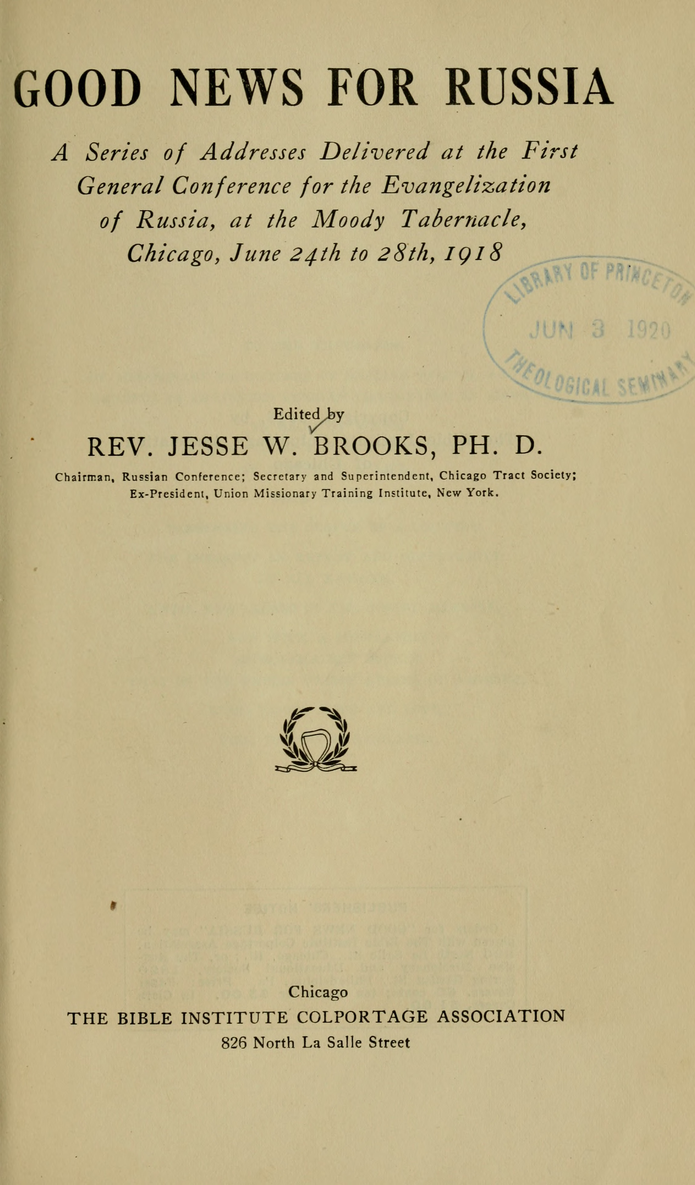 Chairman, Russian Conference; Secretary and Superintendent, Chicago Tract Society;