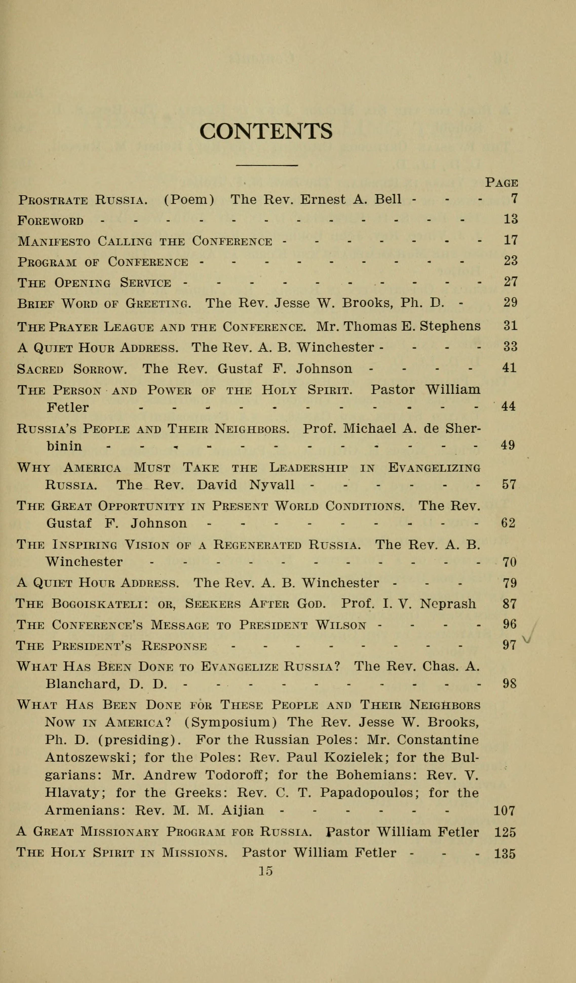 A Great Missionary Program for Russia. Pastor William Fetler | 125 |