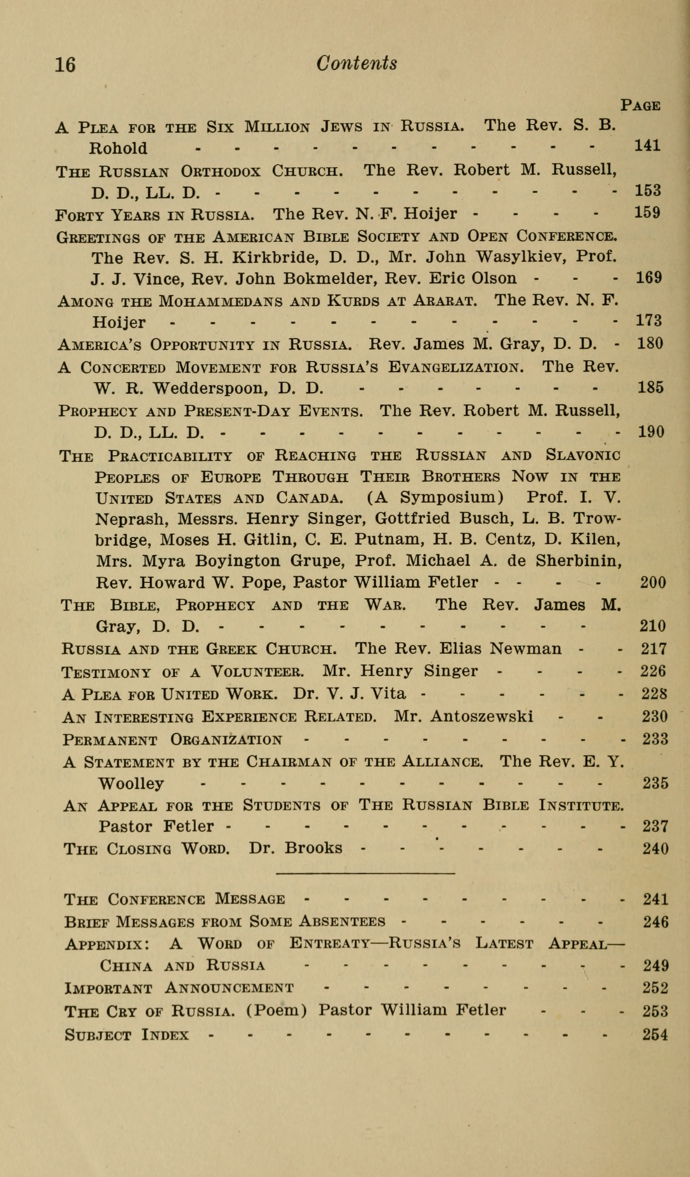 The Cry of Russia. (Poem) Pastor William Fetler | 253 |