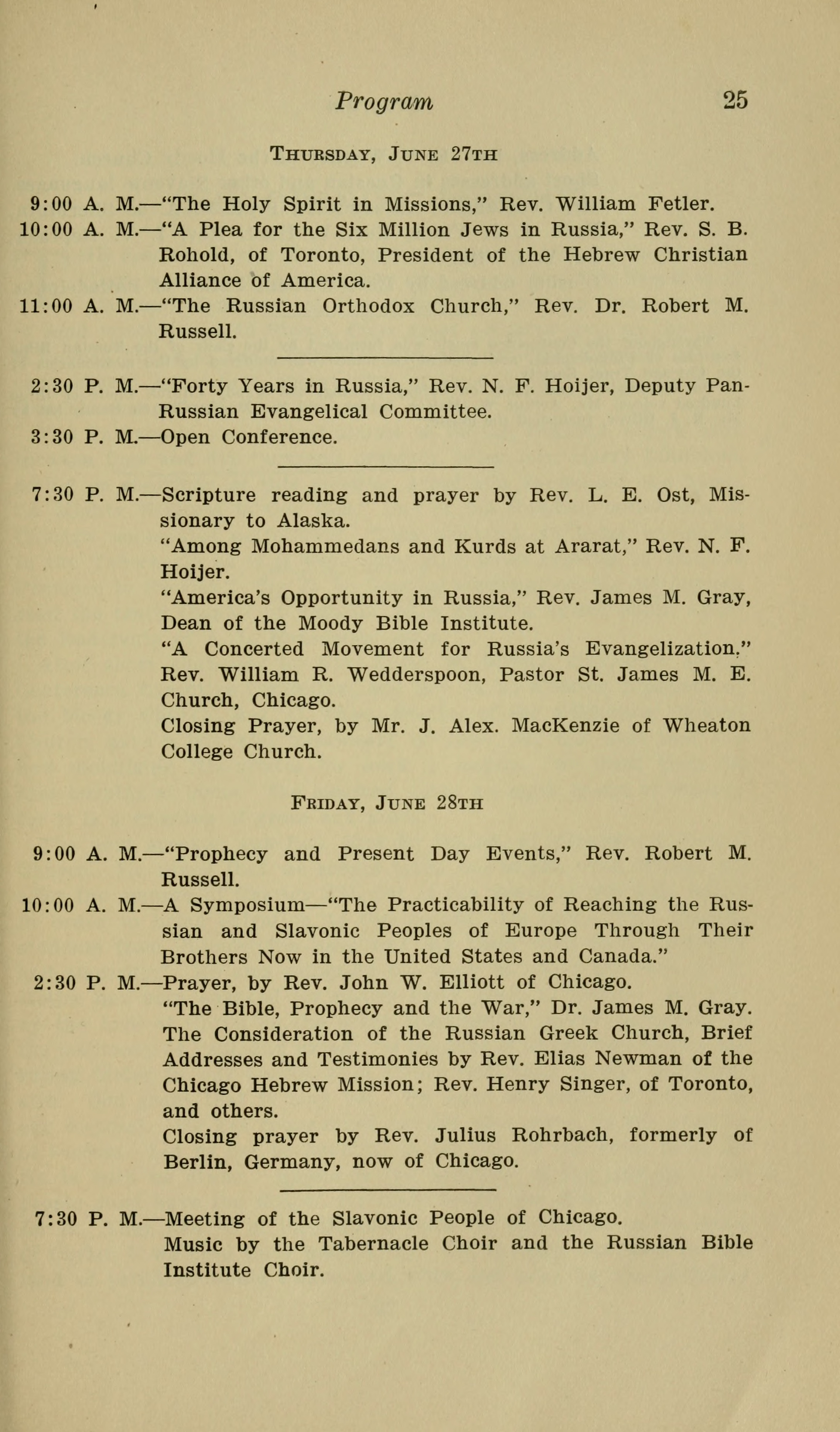 2:30 P. M.—"Forty Years in Russia," Rev. N. F. Hoijer, Deputy Pan-