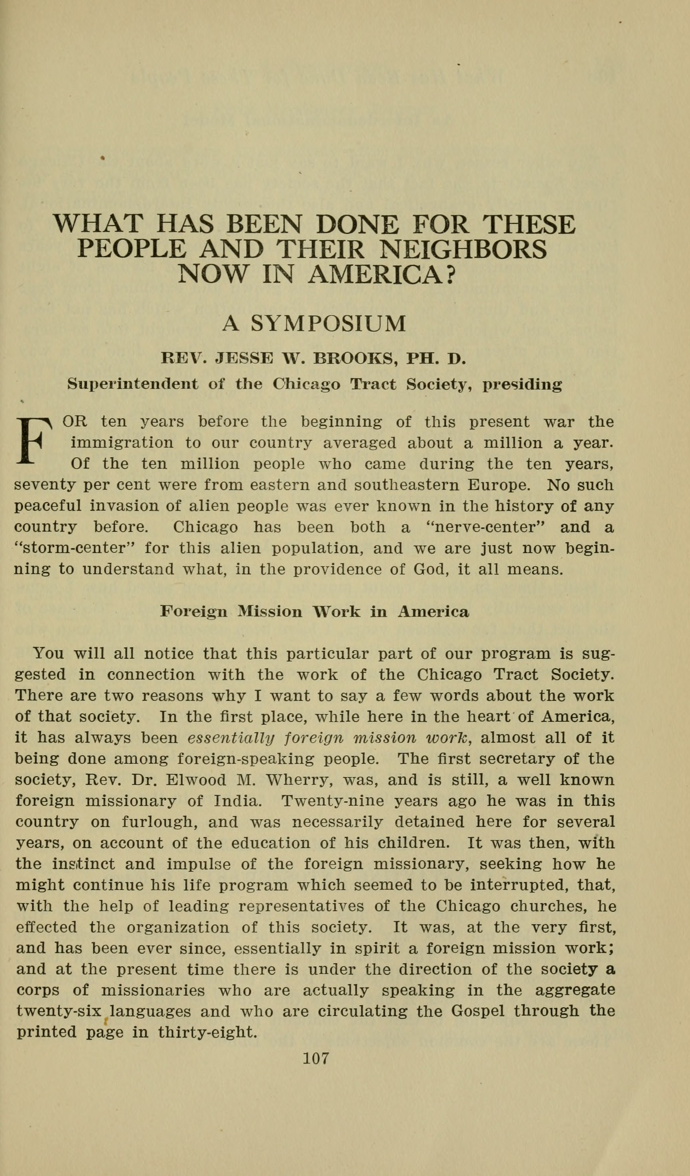 Full resolution (JPEG) - On this page / på denna sida - What Has Been Done for These People and Their Neighbors Now in America? (Symposium) The Rev. Jesse W. Brooks, Ph. D. (presiding) - Foreign Mission Work in America