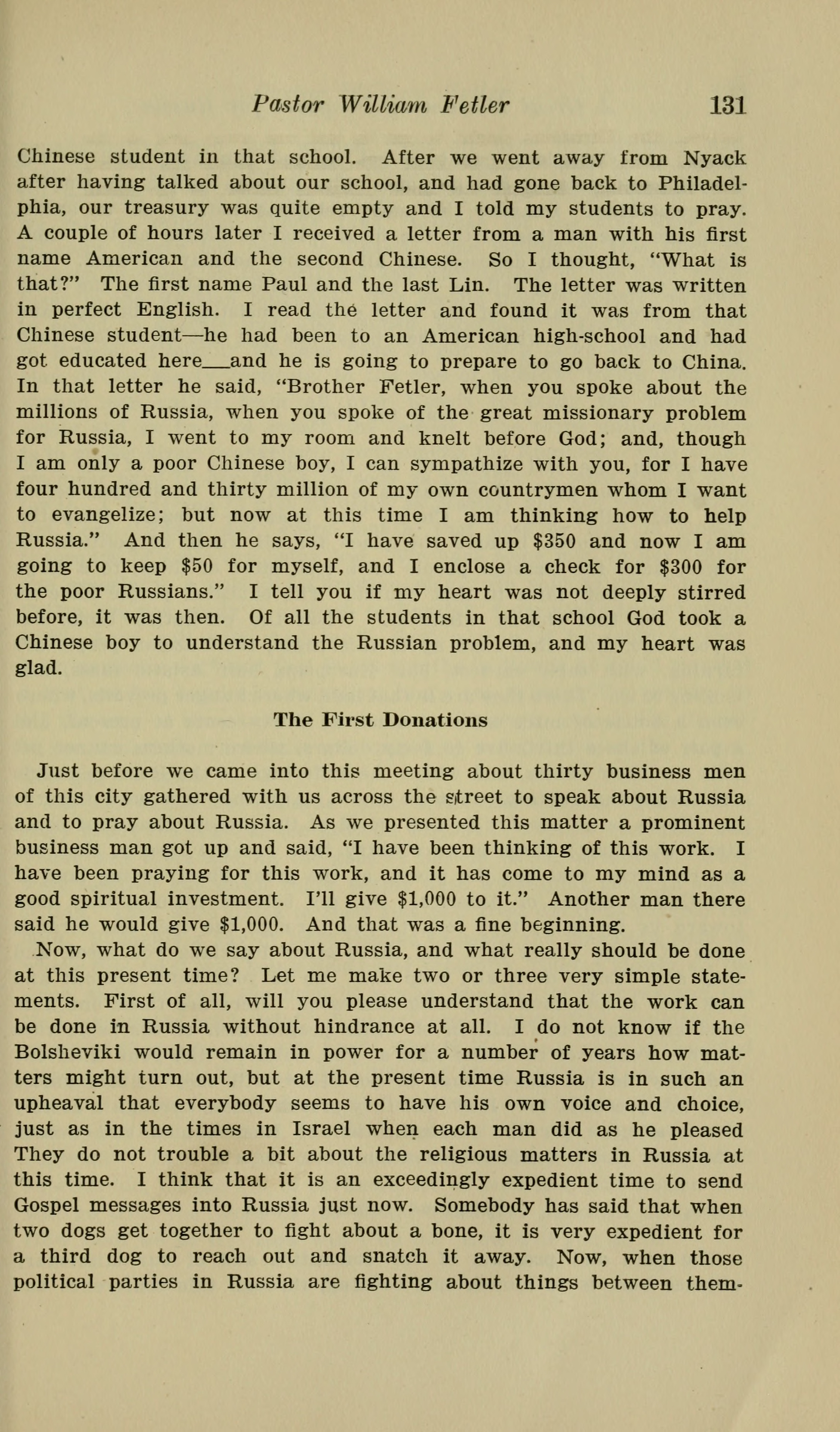 Full resolution (JPEG) - On this page / på denna sida - A Great Missionary Program for Russia. Pastor William Fetler - Russia’s Missionary Problem - The First Donations