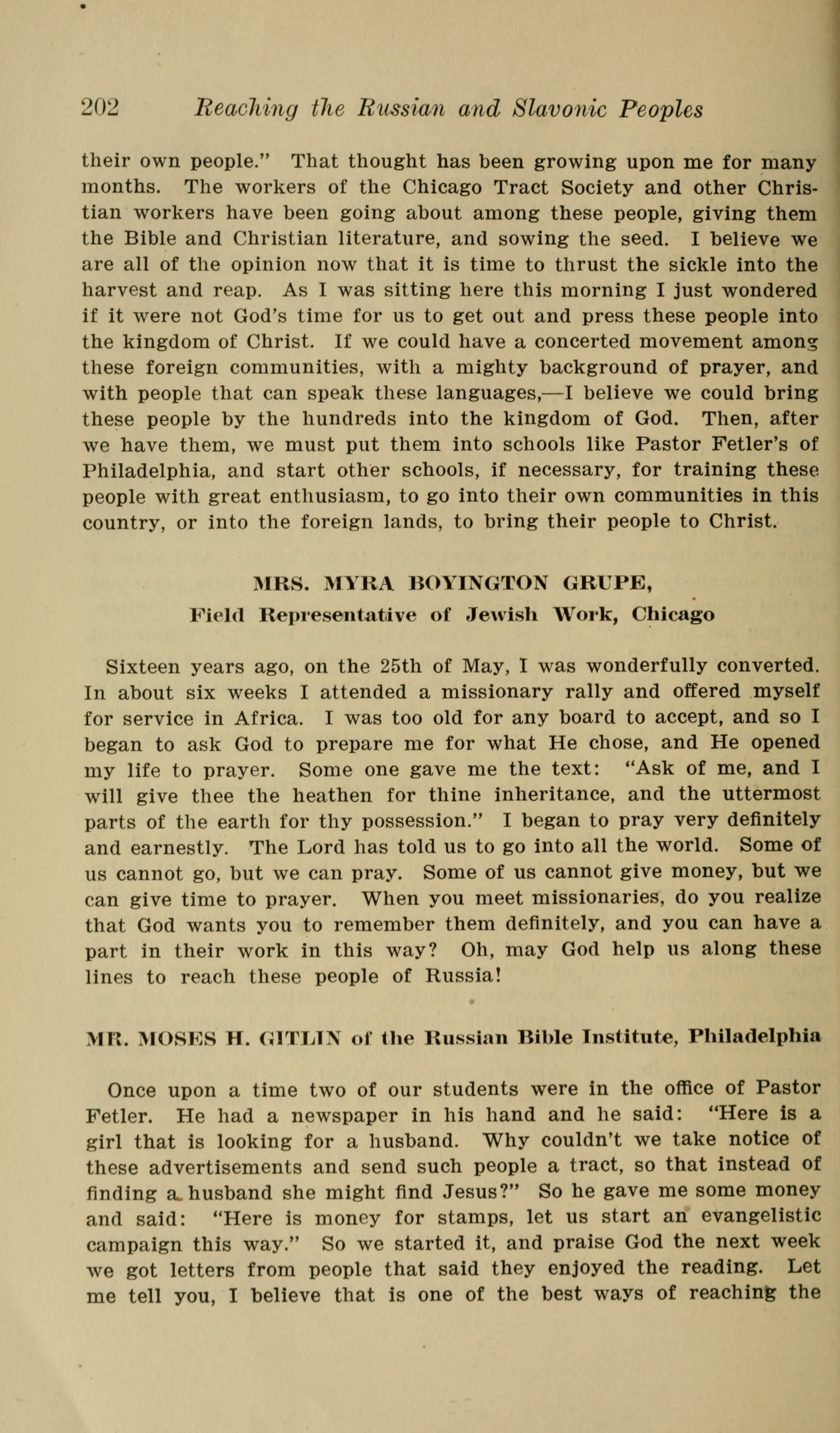 Full resolution (JPEG) - On this page / på denna sida - The Practicability of Reaching the Russian and Slavonic Peoples of Europe Through Their Brothers Now in the United States and Canada. (A Symposium) - Mr. L. B. Trowbridge - Mrs. Myra Boyington Grupe - Mr. Moses H. Gitlin