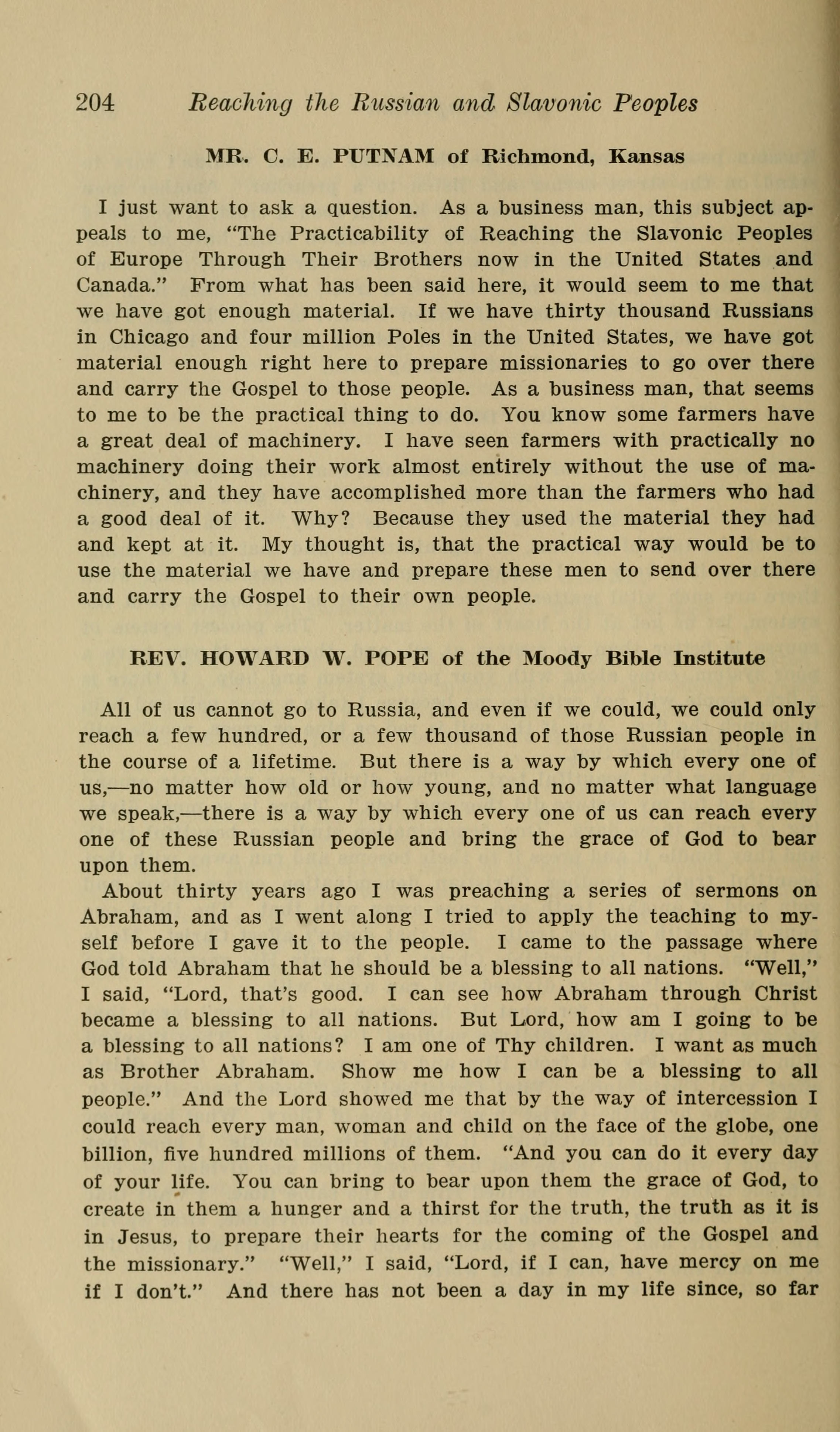 Full resolution (JPEG) - On this page / på denna sida - The Practicability of Reaching the Russian and Slavonic Peoples of Europe Through Their Brothers Now in the United States and Canada. (A Symposium) - Mr. C. E. Putnam - Rev. Howard W. Pope
