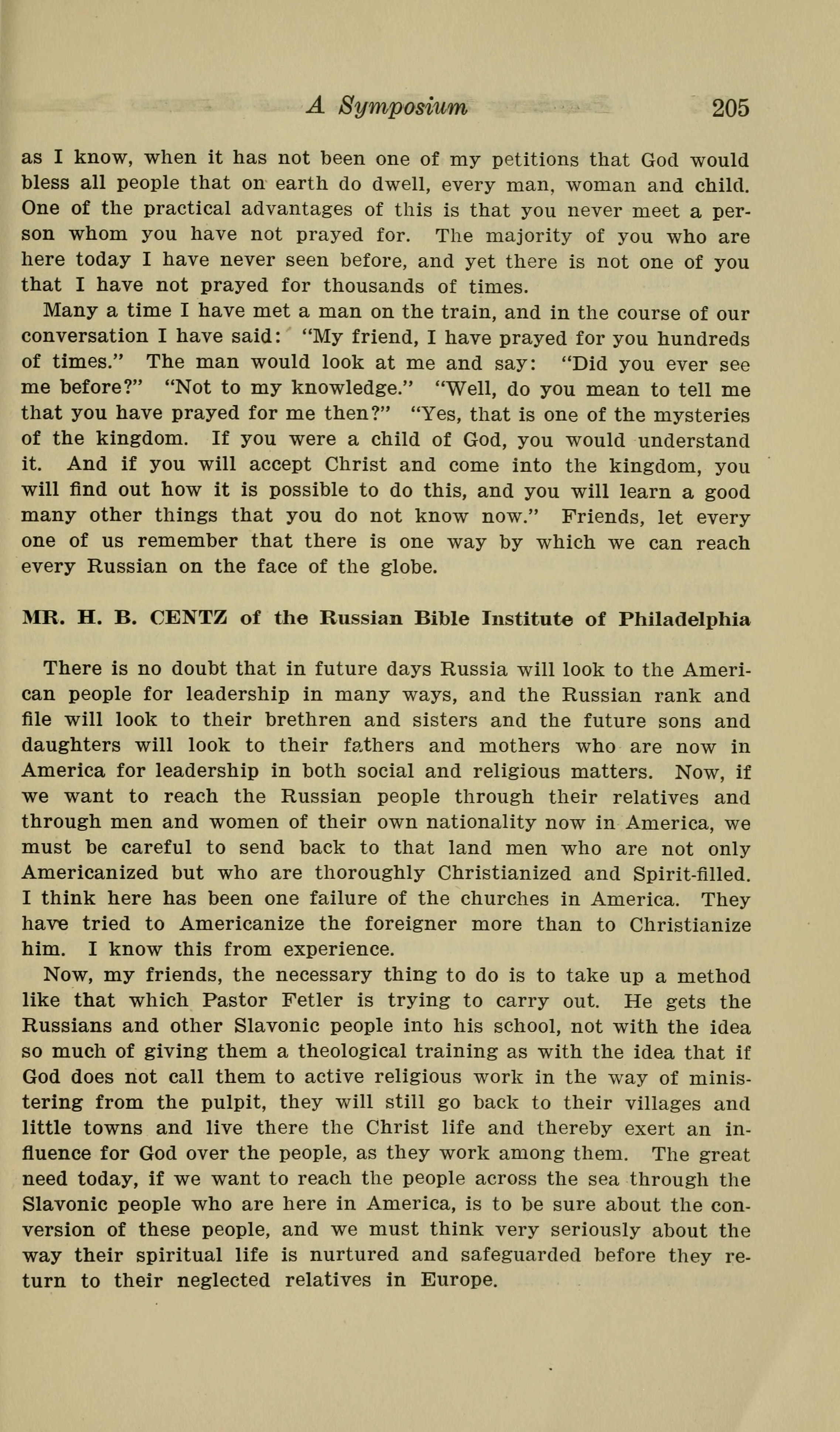 Full resolution (JPEG) - On this page / på denna sida - The Practicability of Reaching the Russian and Slavonic Peoples of Europe Through Their Brothers Now in the United States and Canada. (A Symposium) - Rev. Howard W. Pope - Mr. H. B. Centz
