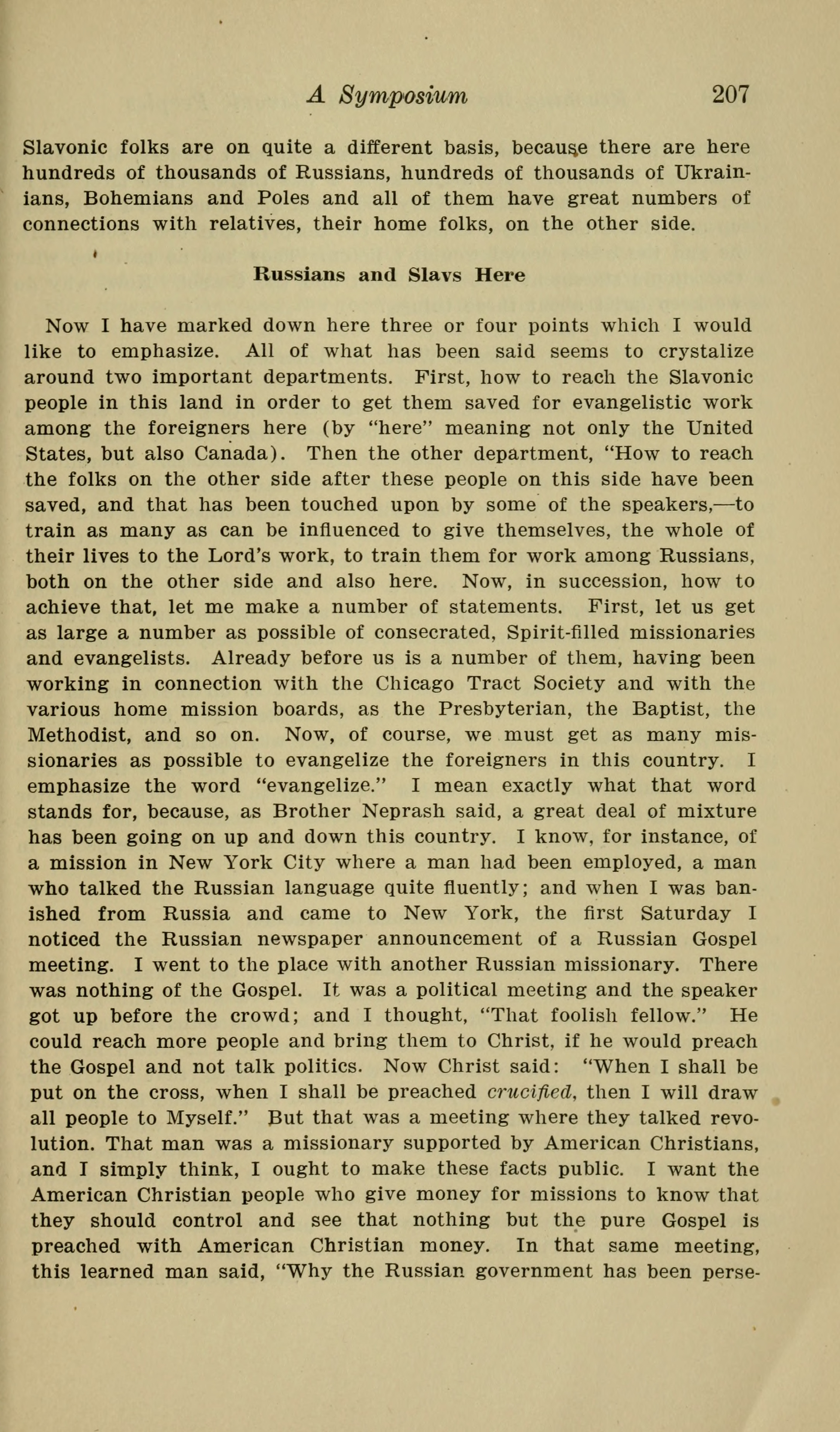 Full resolution (JPEG) - On this page / på denna sida - The Practicability of Reaching the Russian and Slavonic Peoples of Europe Through Their Brothers Now in the United States and Canada. (A Symposium) - Pastor William Fetler - Russians and Slavs Here