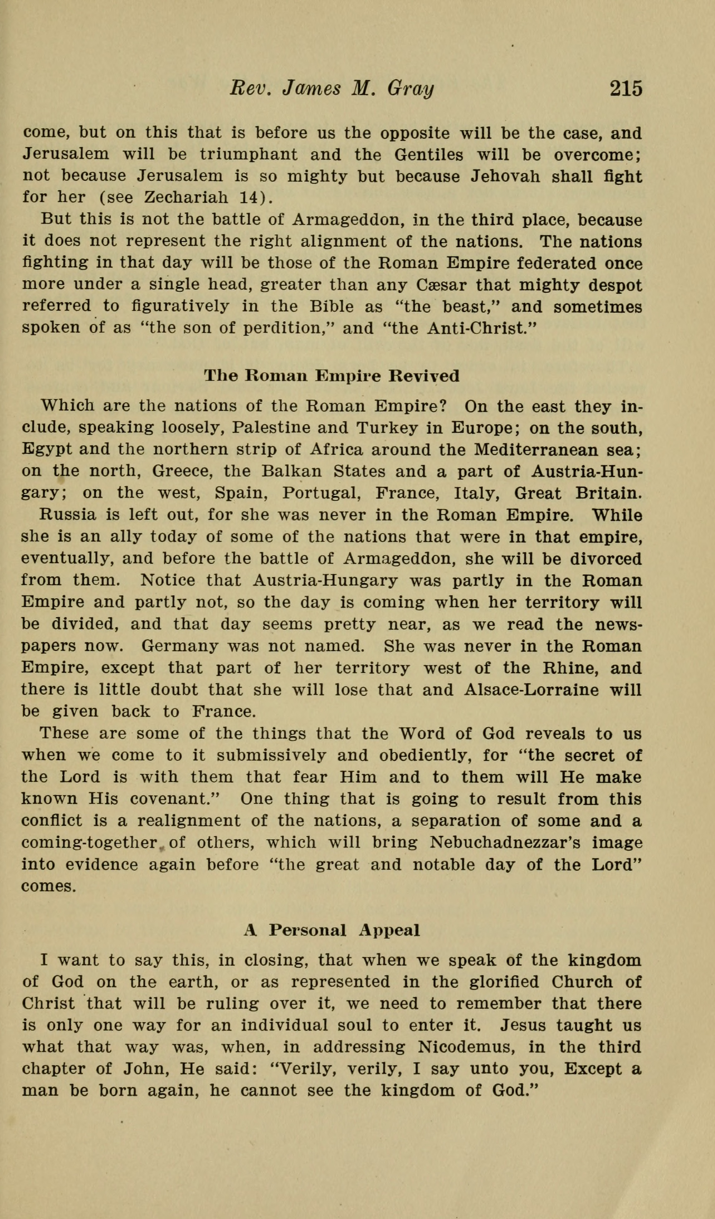 Full resolution (JPEG) - On this page / på denna sida - The Bible, Prophecy and the War. The Rev. James M. Gray, D. D. - III. This War Not Armageddon - The Roman Empire Revived - A Personal Appeal