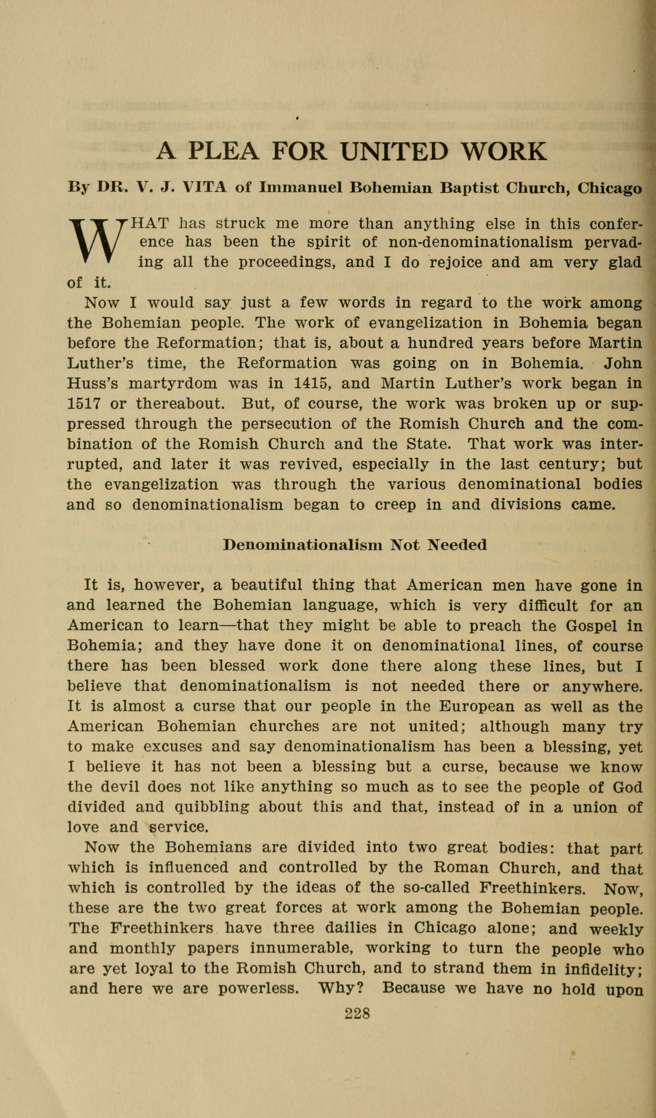 By DR. V. J. VITA of Immanuel Bohemian Baptist Church, Chicago