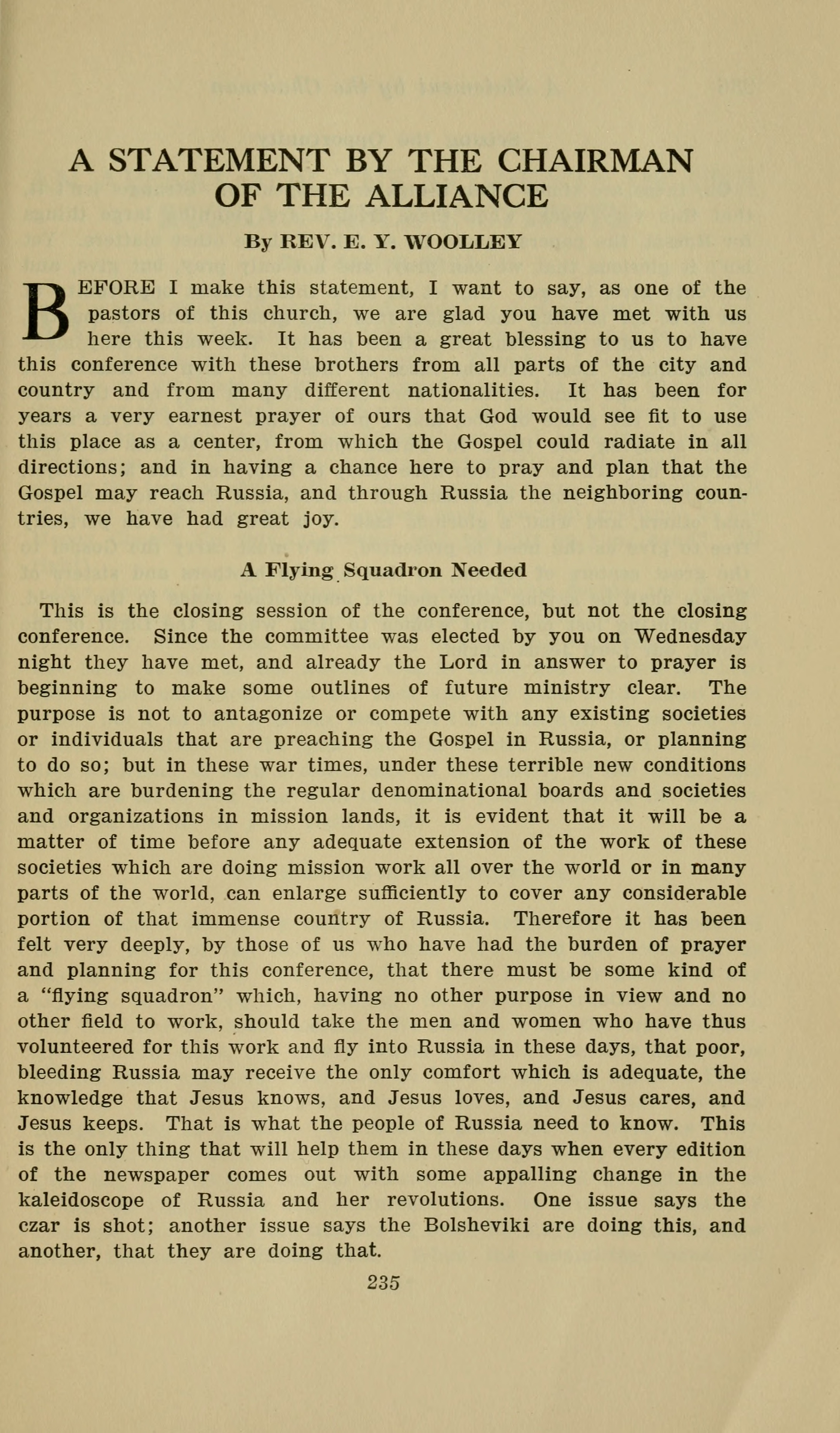 Full resolution (JPEG) - On this page / på denna sida - A Statement by the Chairman of the Alliance. The Rev. E. Y. Woolley - A Flying Squadron Needed
