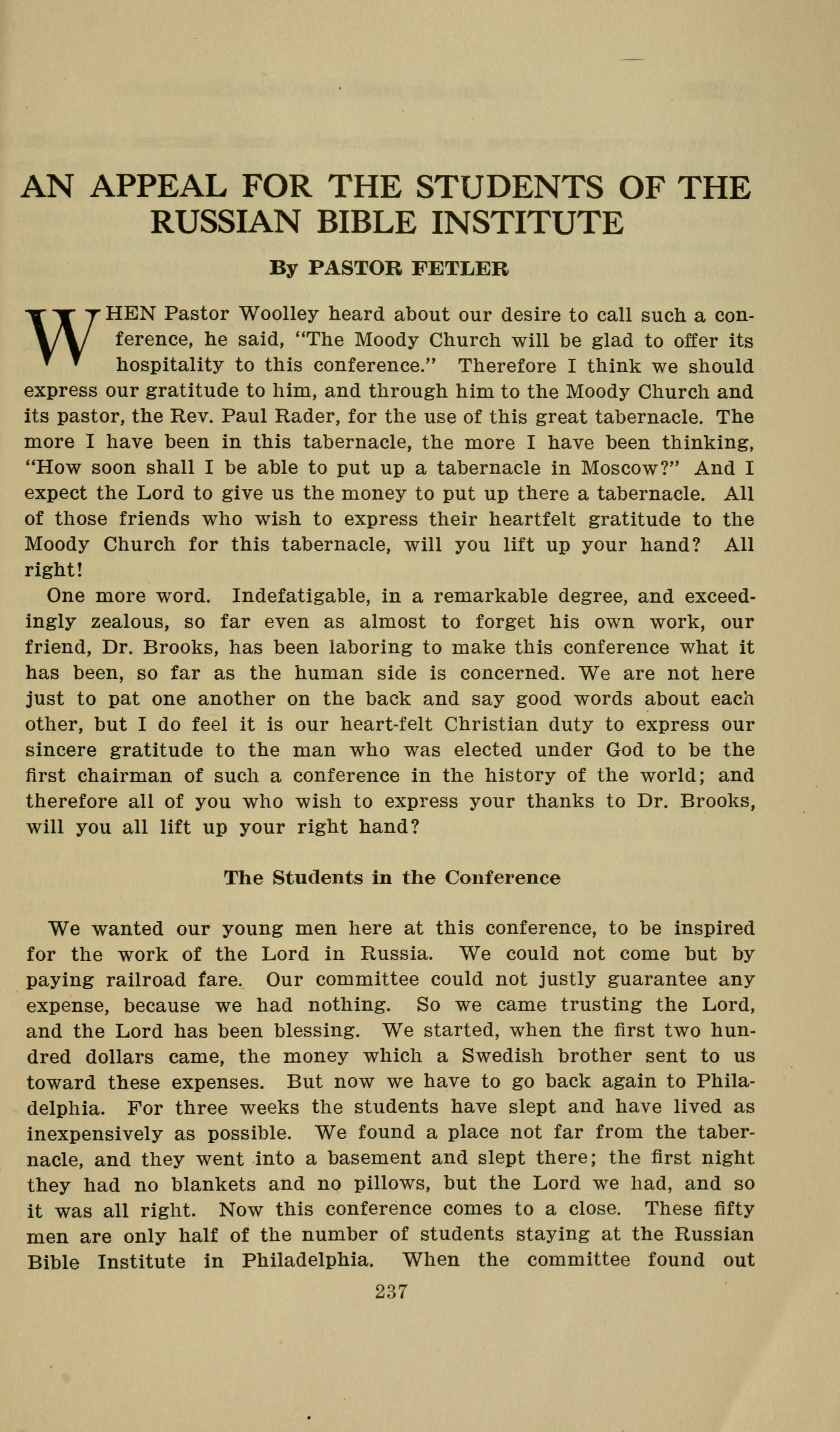 Full resolution (JPEG) - On this page / på denna sida - An Appeal for the Students of The Russian Bible Institute. Pastor Fetler - The Students in the Conference