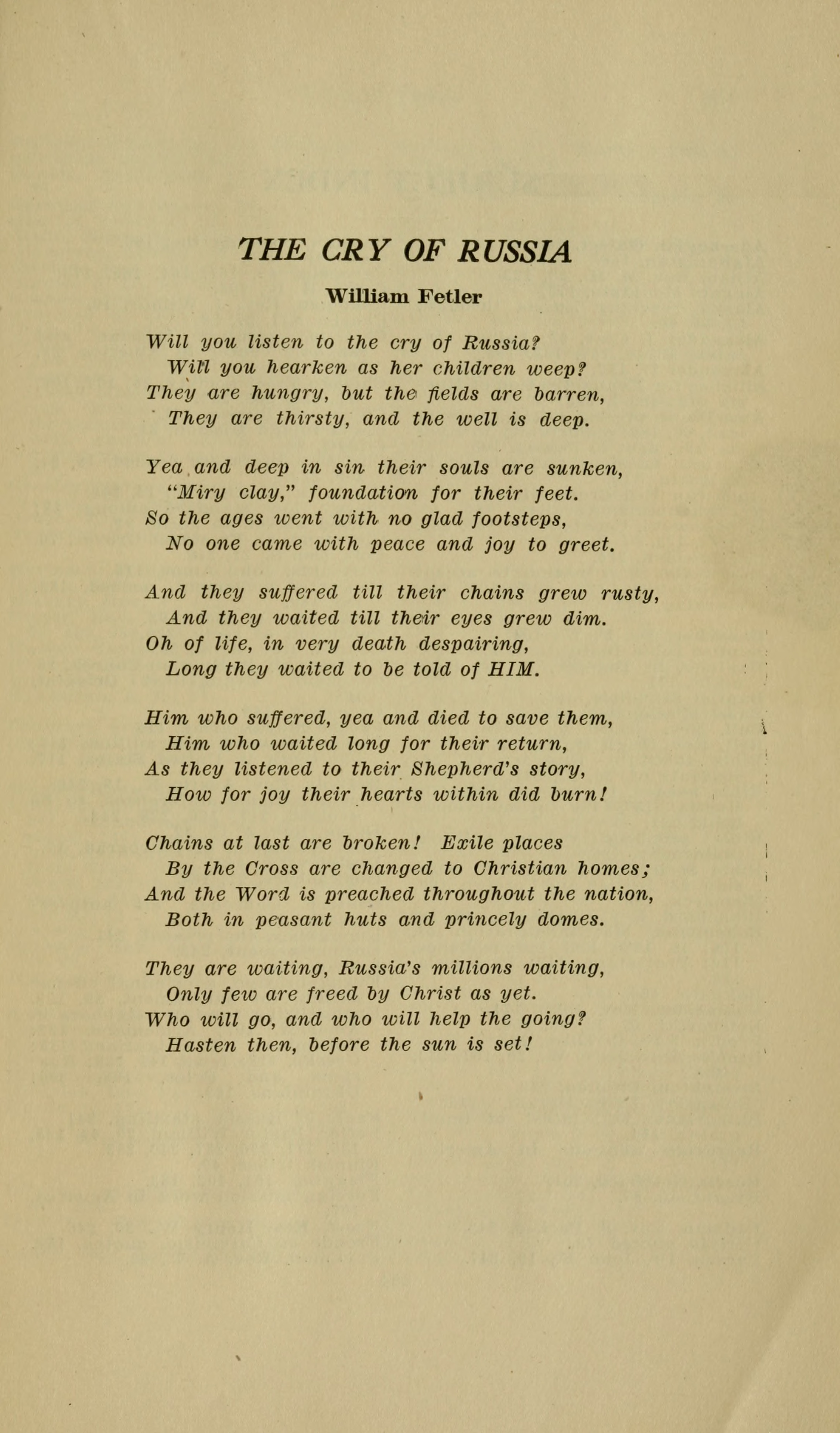 Full resolution (JPEG) - On this page / på denna sida - The Cry of Russia. (Poem) Pastor William Fetler