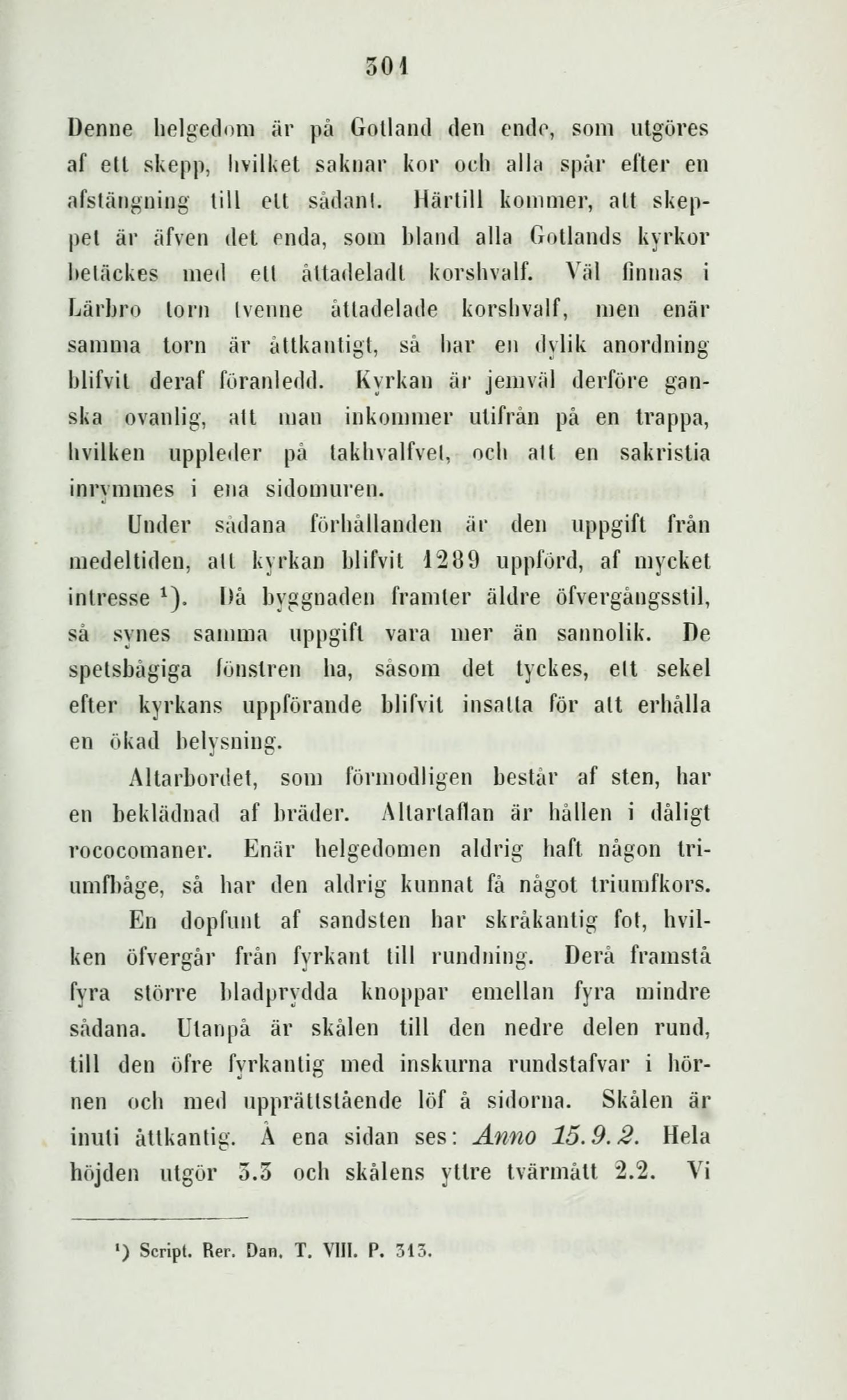 medeltiden, all kyrkan blifvit 1289 uppförd, af mycket