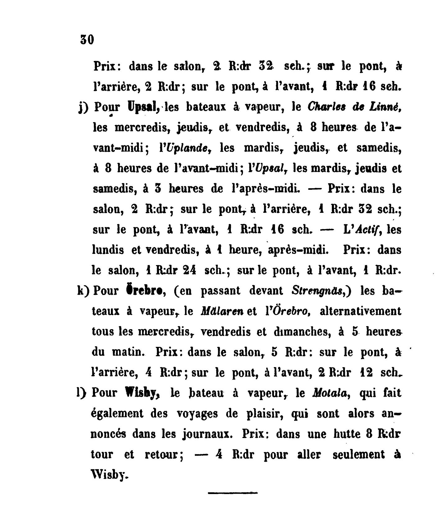 j) Pour Upsalj les bateaux à vapeur, le Charte» de Linné,