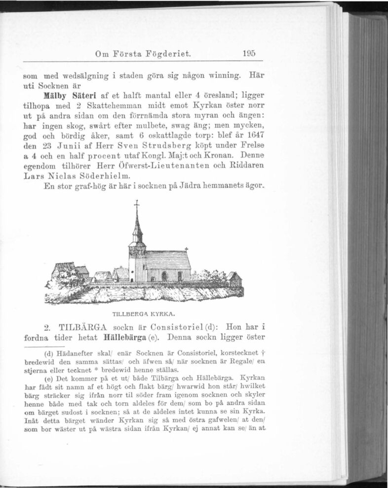 (e) Det kommer på et ut/ både Tilbärga och Hällebärga. Kyrkan