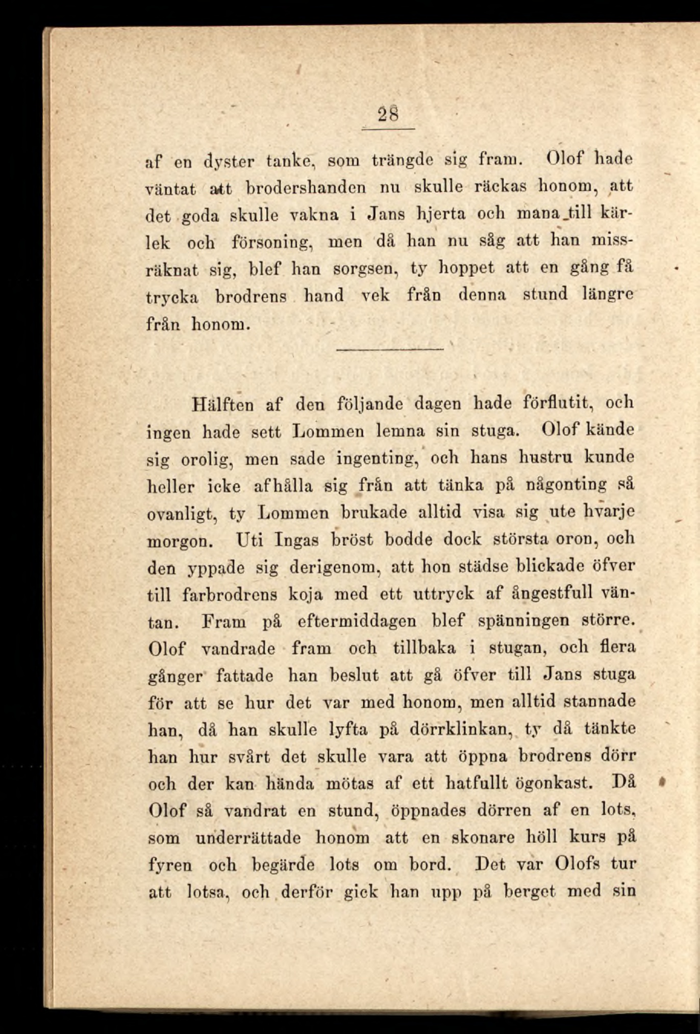 ingen hade sett Lommen lemna sin stuga. Olof kände