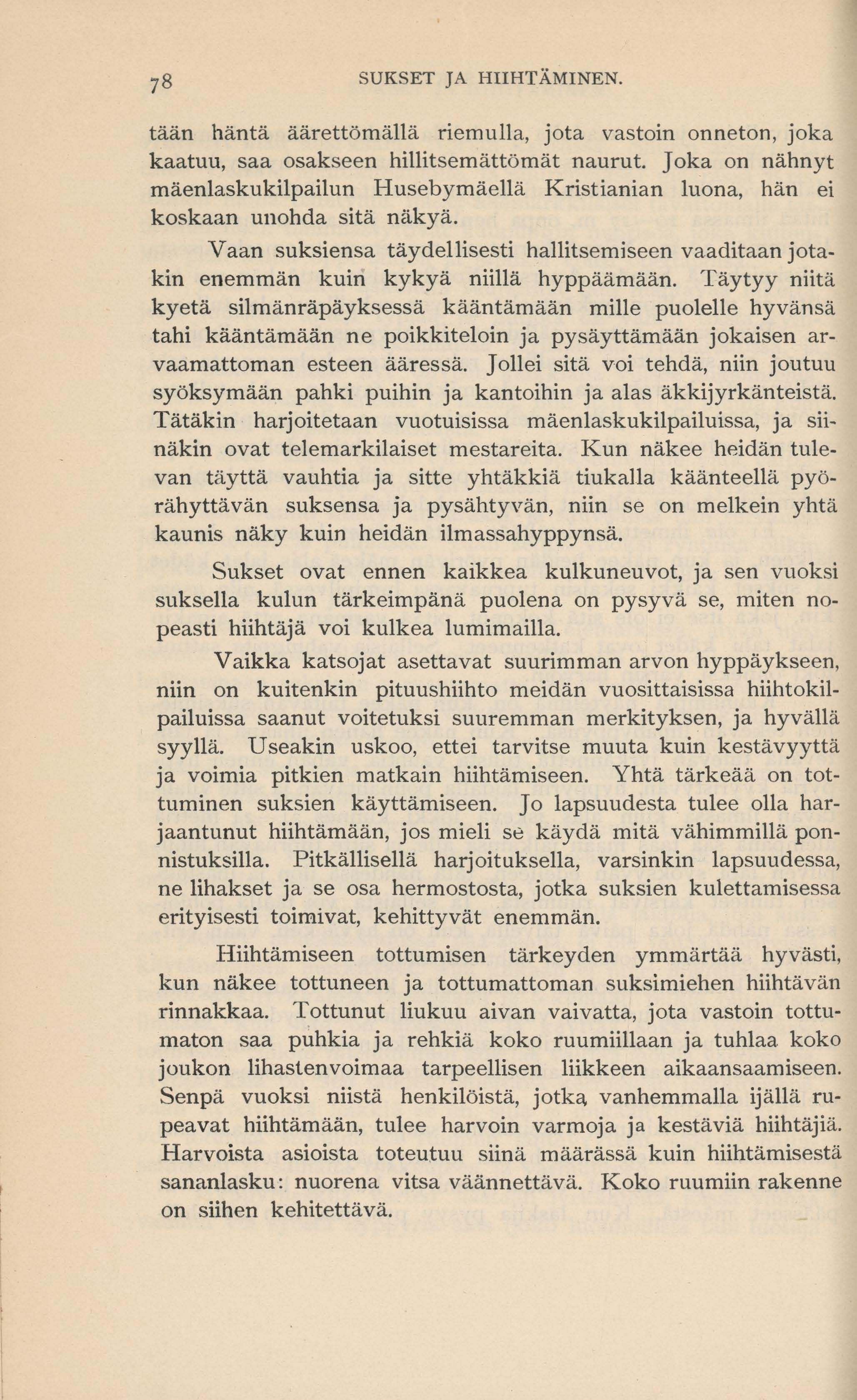 tottuminen suksien käyttämiseen. Jo lapsuudesta tulee olla