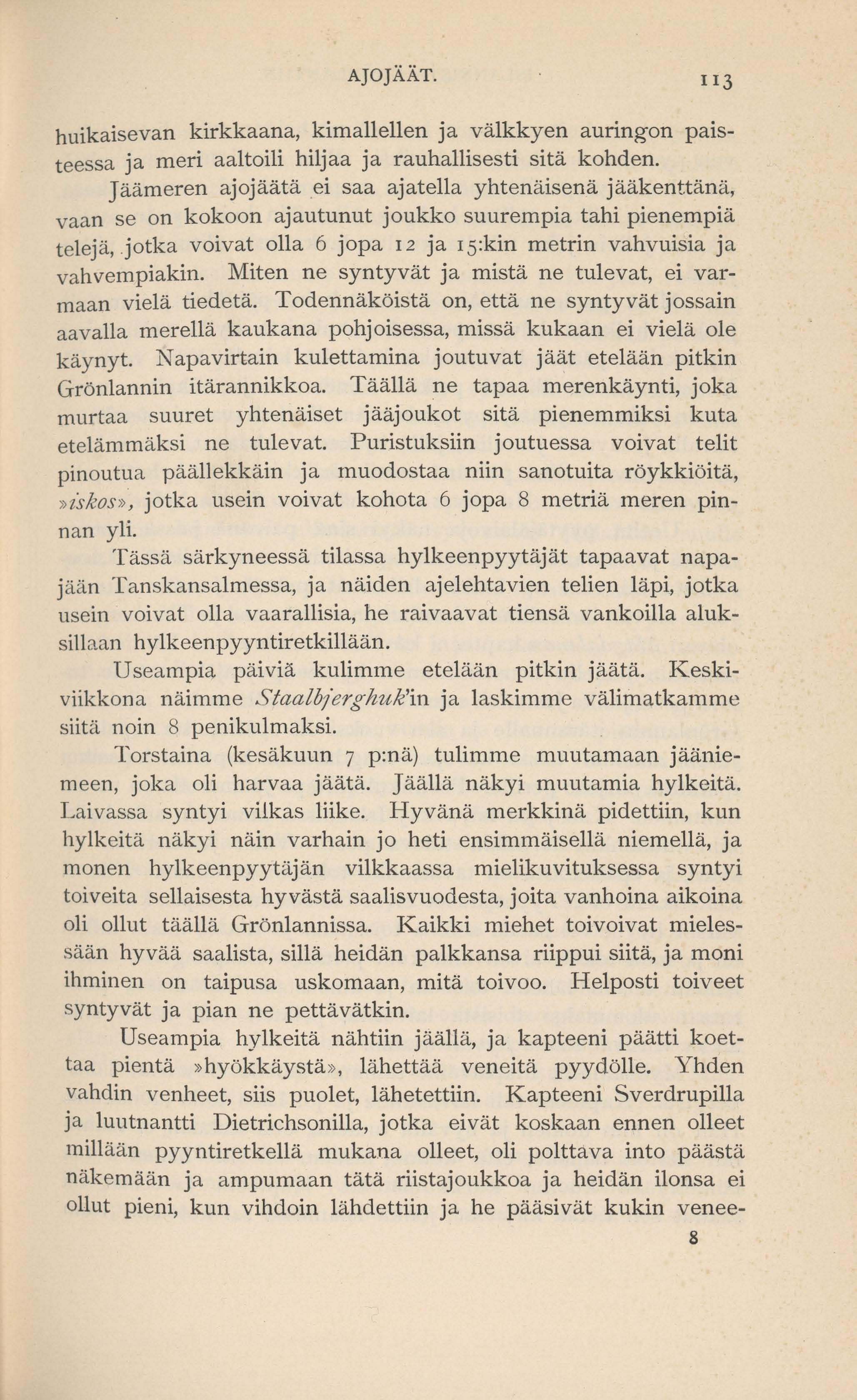 käynyt. Napavirtain kulettamina joutuvat jäät etelään pitkin