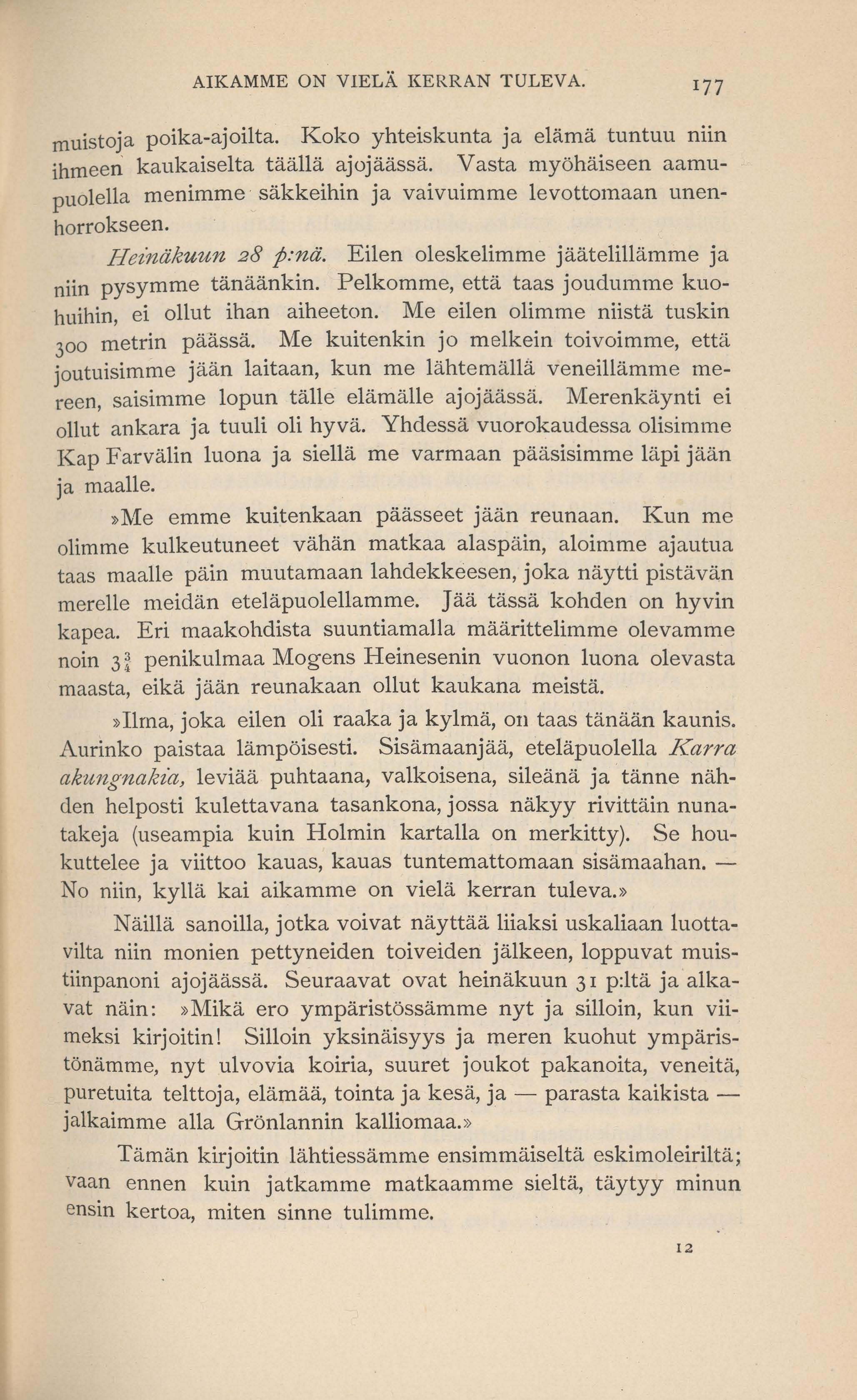 Tämän kirjoitin lähtiessämme ensimmäiseltä eskimoleiriltä;