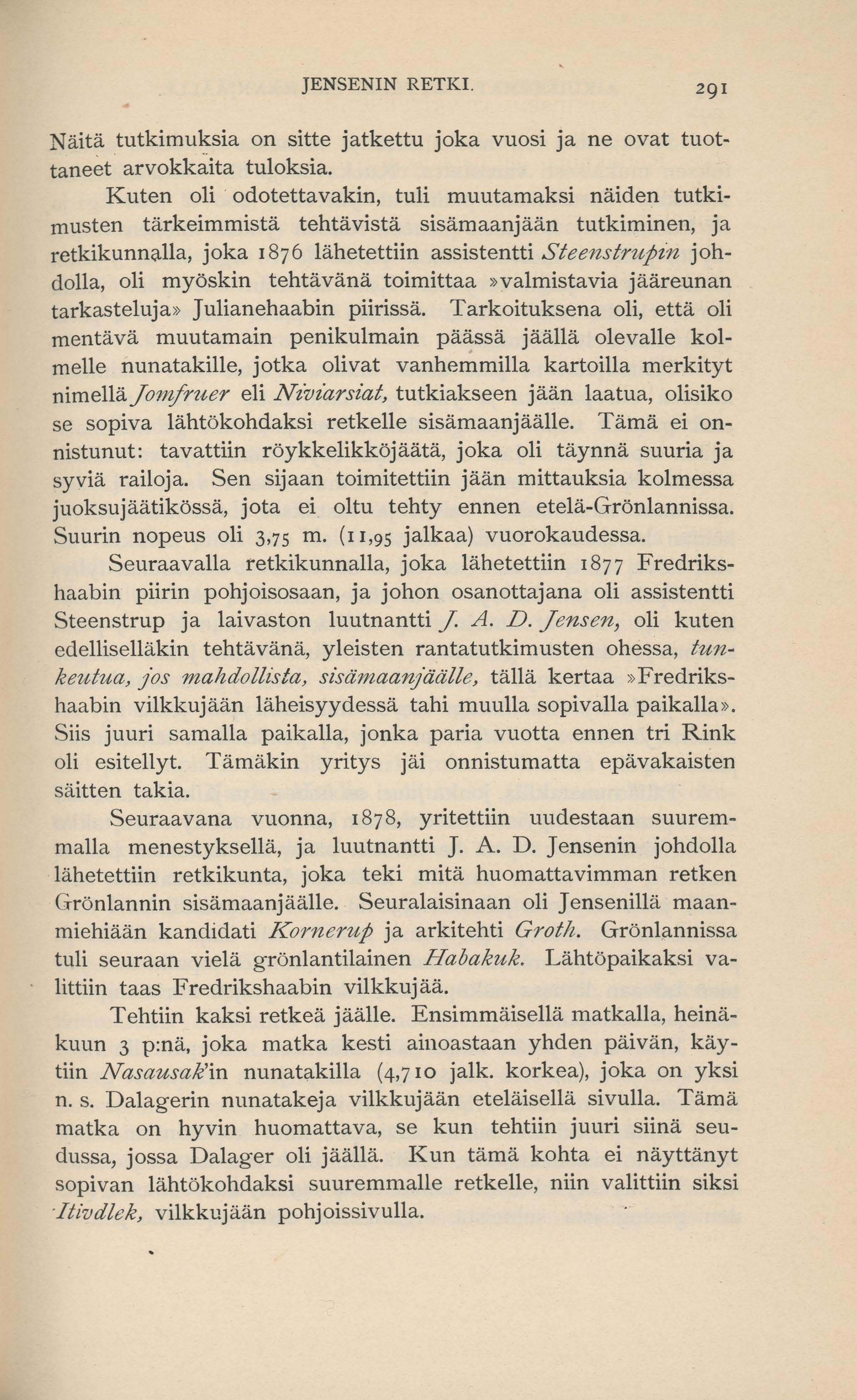 Grönlannin sisämaanjäälle. Seuralaisinaan oli Jensenillä